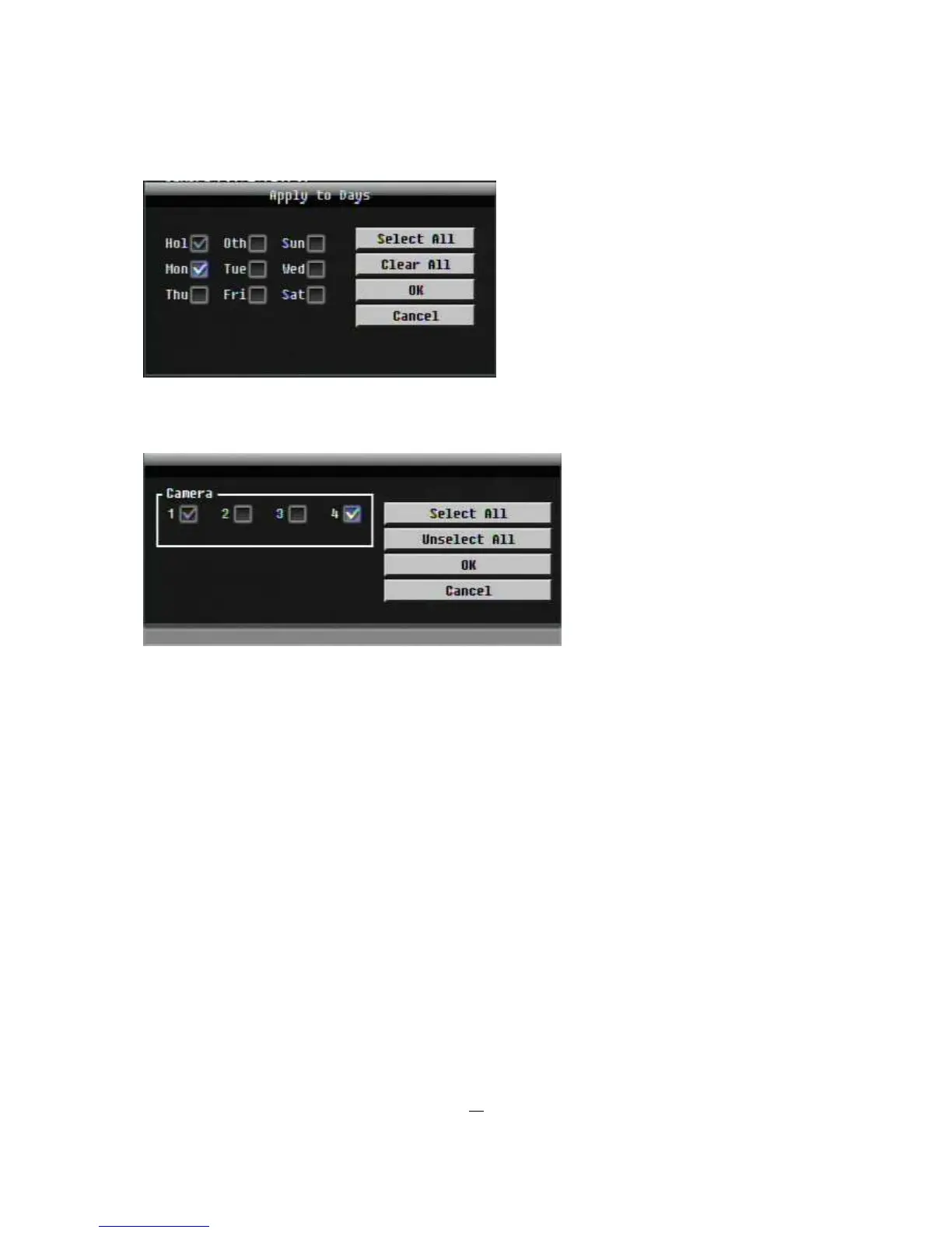 Apply to Cameras: This button can be used to copy schedules to other cameras. Select which cameras