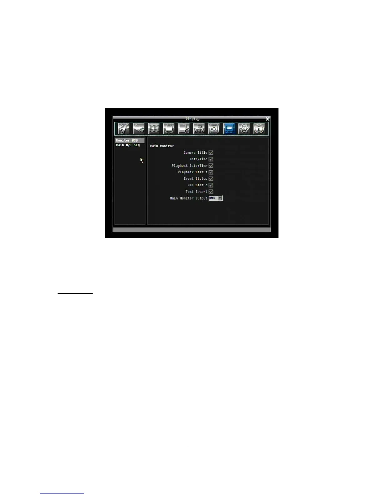 Main Monitor Output: This system supports both VGA and BNC monitor displays at the same time but