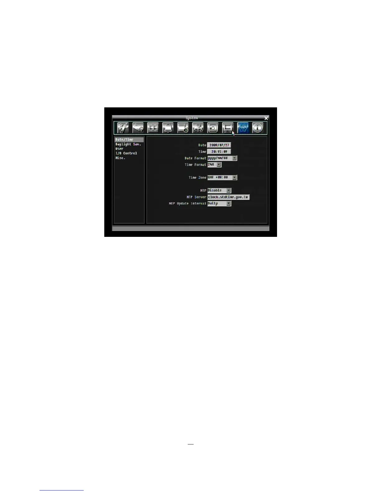 Figure 5-30 System Menu – Date/Time