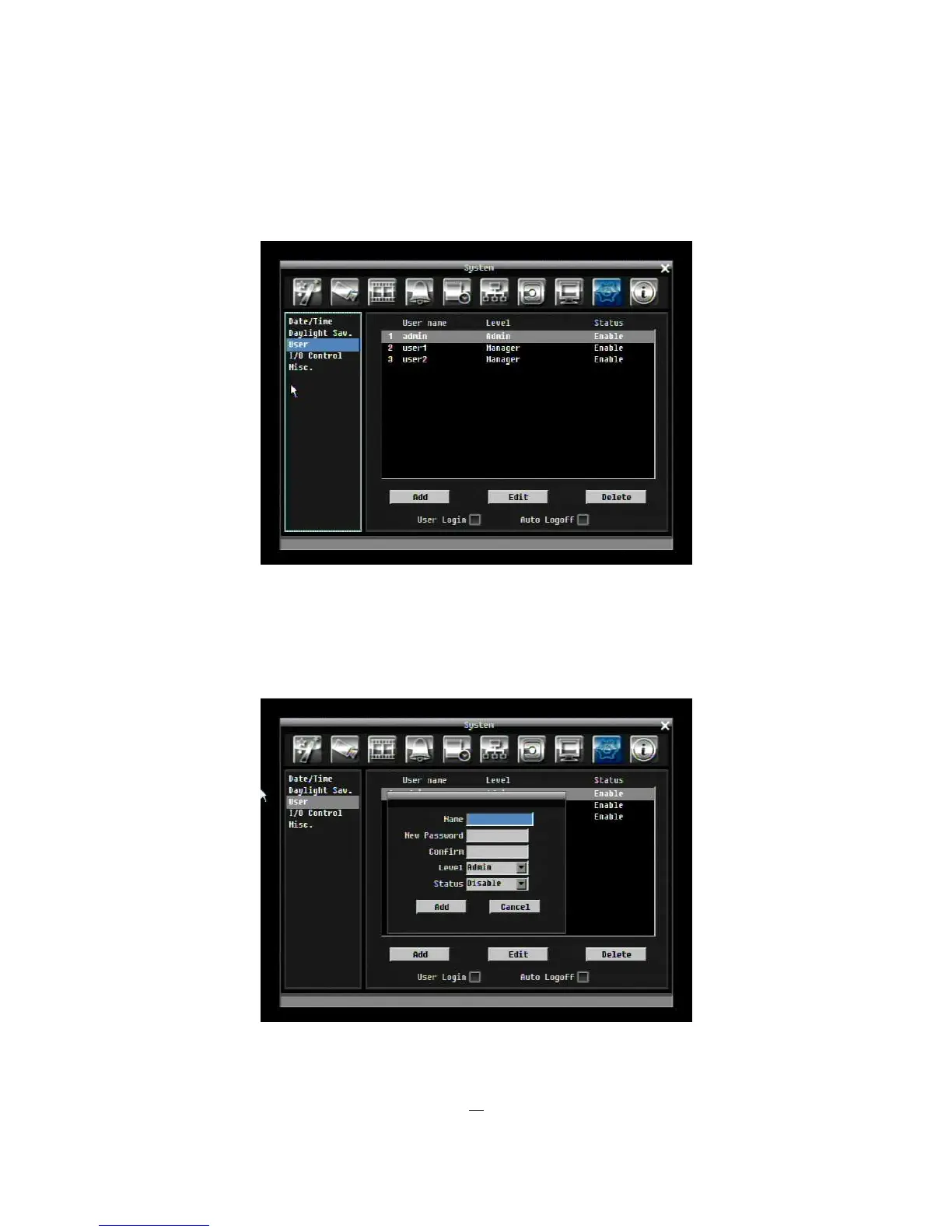 Figure 5-33 System Menu – User - Add