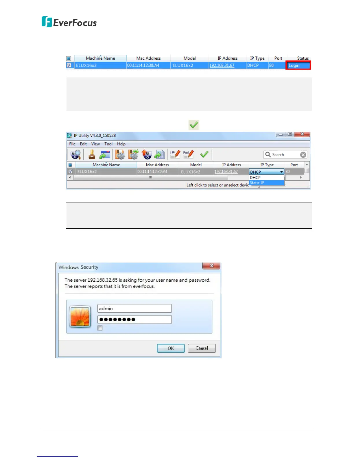 4. To access the Live View window, double click the IP address of the desired device, the login