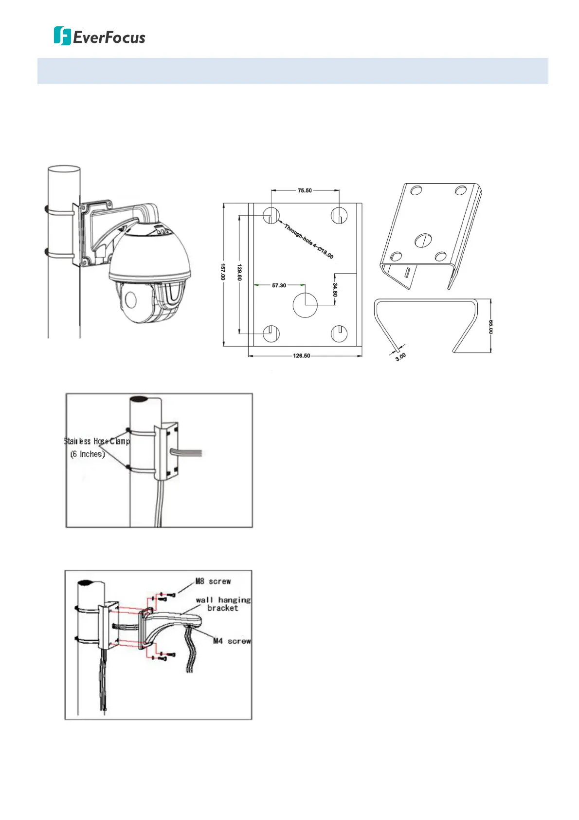 dome camera to a pole structure with diameter between 130-152mm (max. 6 inches). Note that the pole