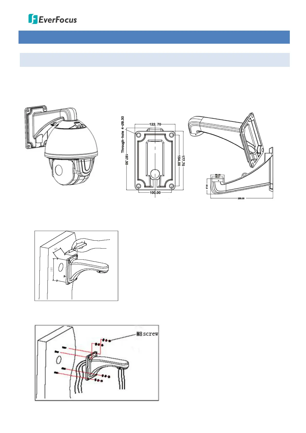 Note that the wall should be withstood at least 4 times the weight of the speed dome camera.