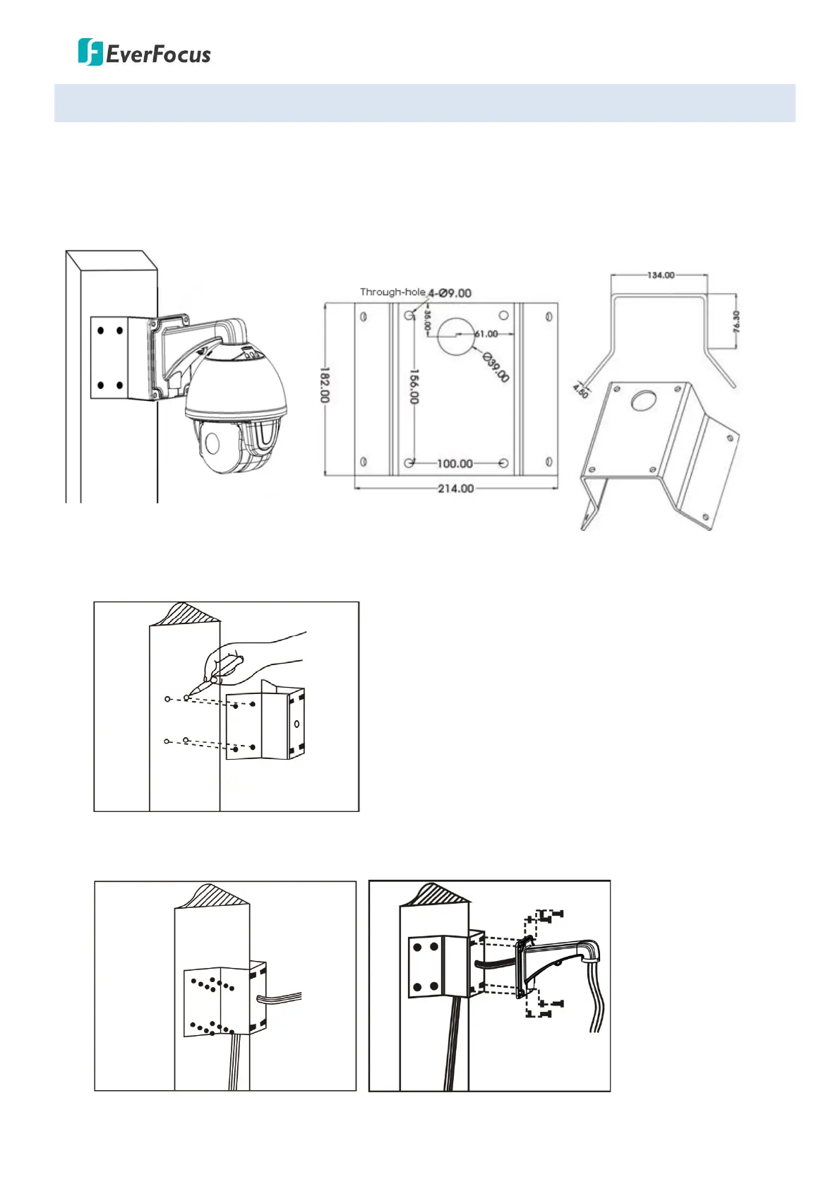 dome camera to the concrete corner wall with 90°angle. Note that the wall should be withstood at least 4