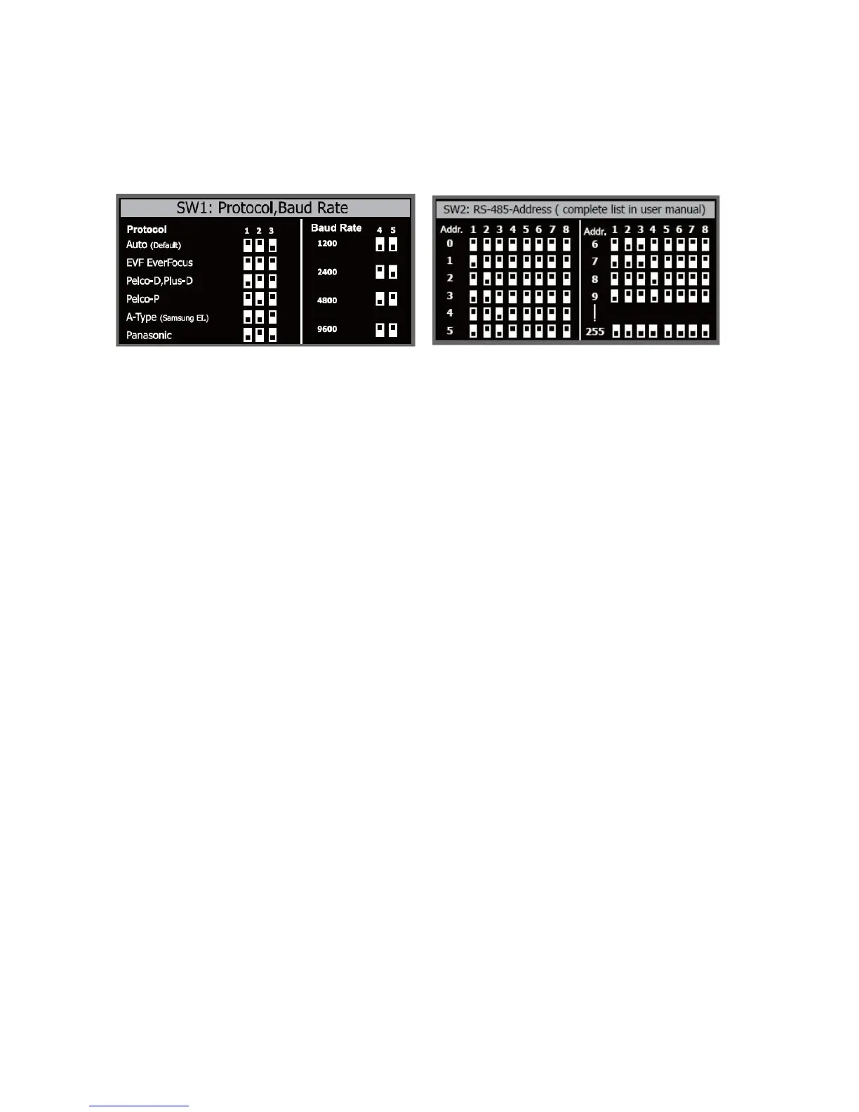 Note: You will see the label of Protocol & Baud Rate as well as RS-485 ID address show