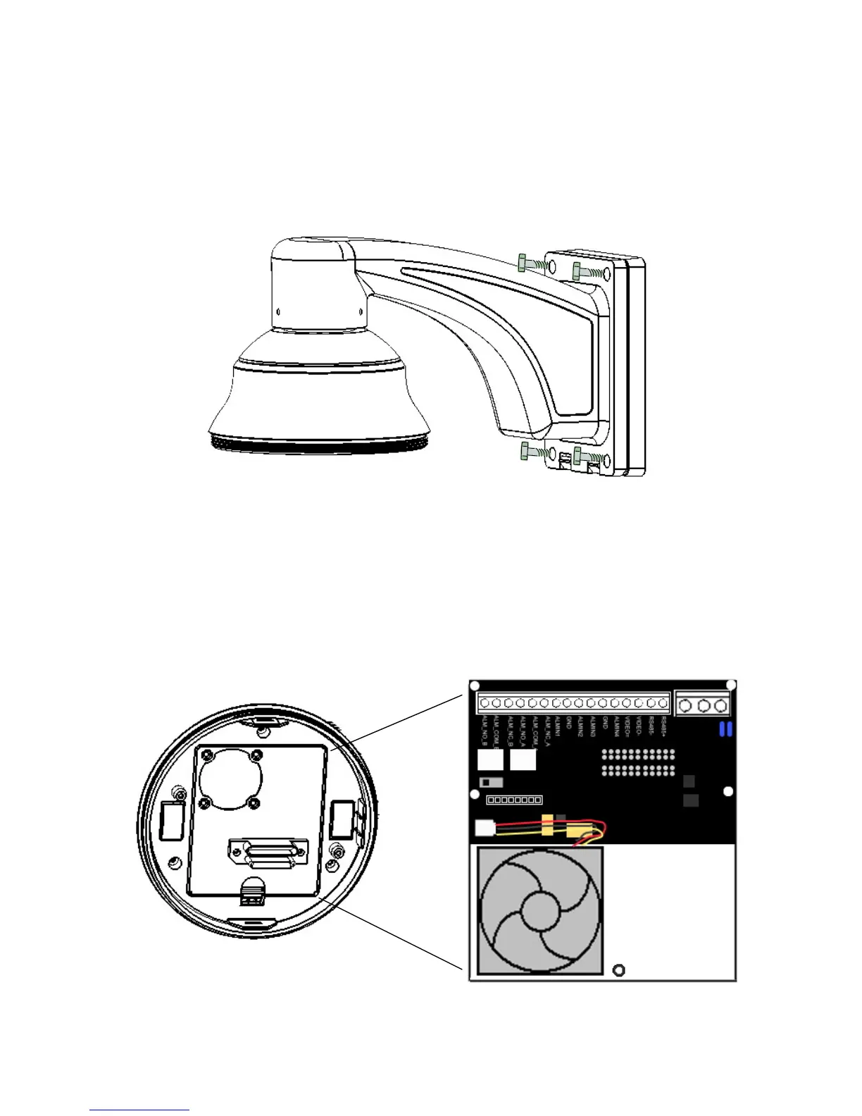 to power pin and RS485 pin. If you need to connect alarm, connect alarm cable to alarm