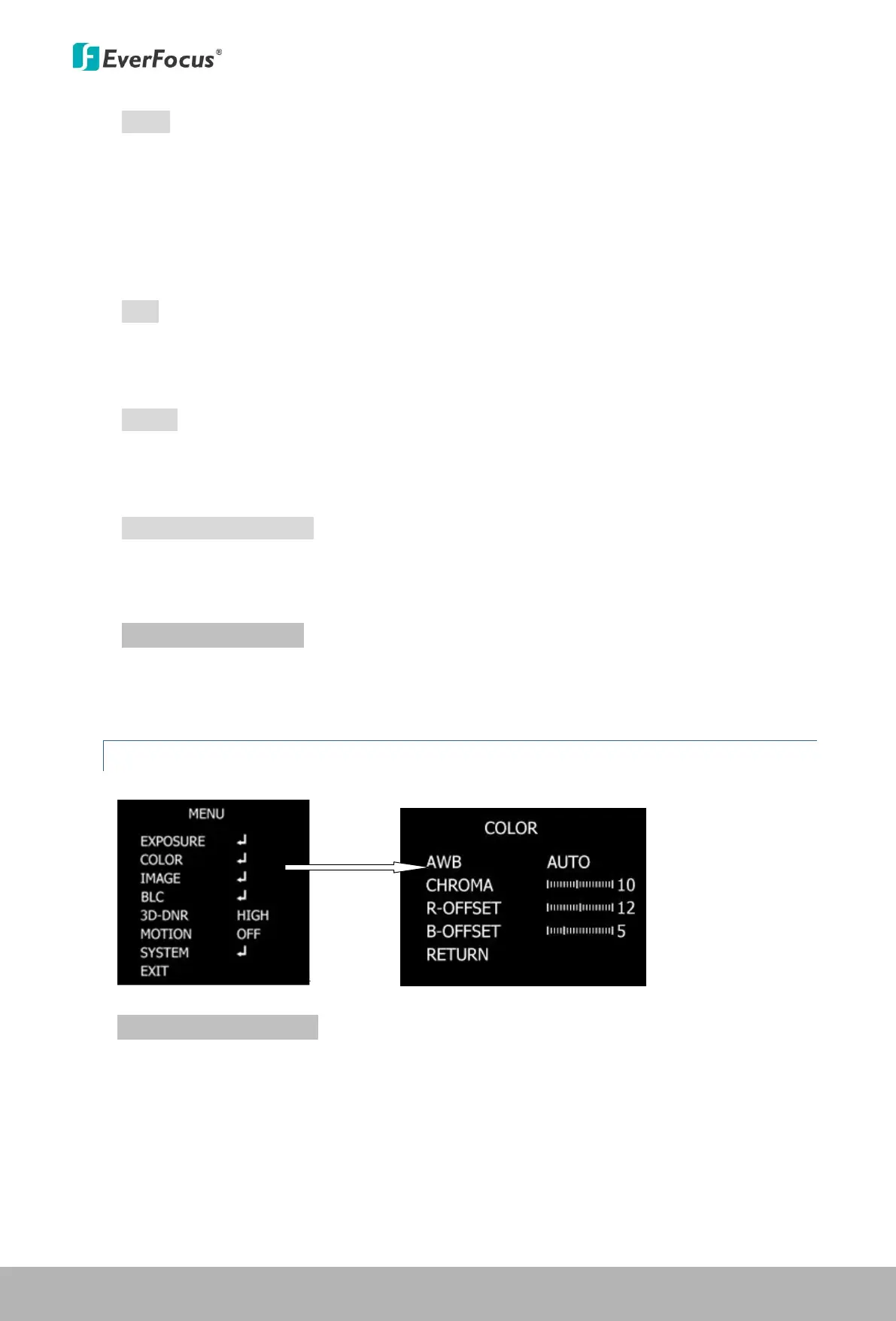COLOR TEMP, R-GAIN and B-GAIN.