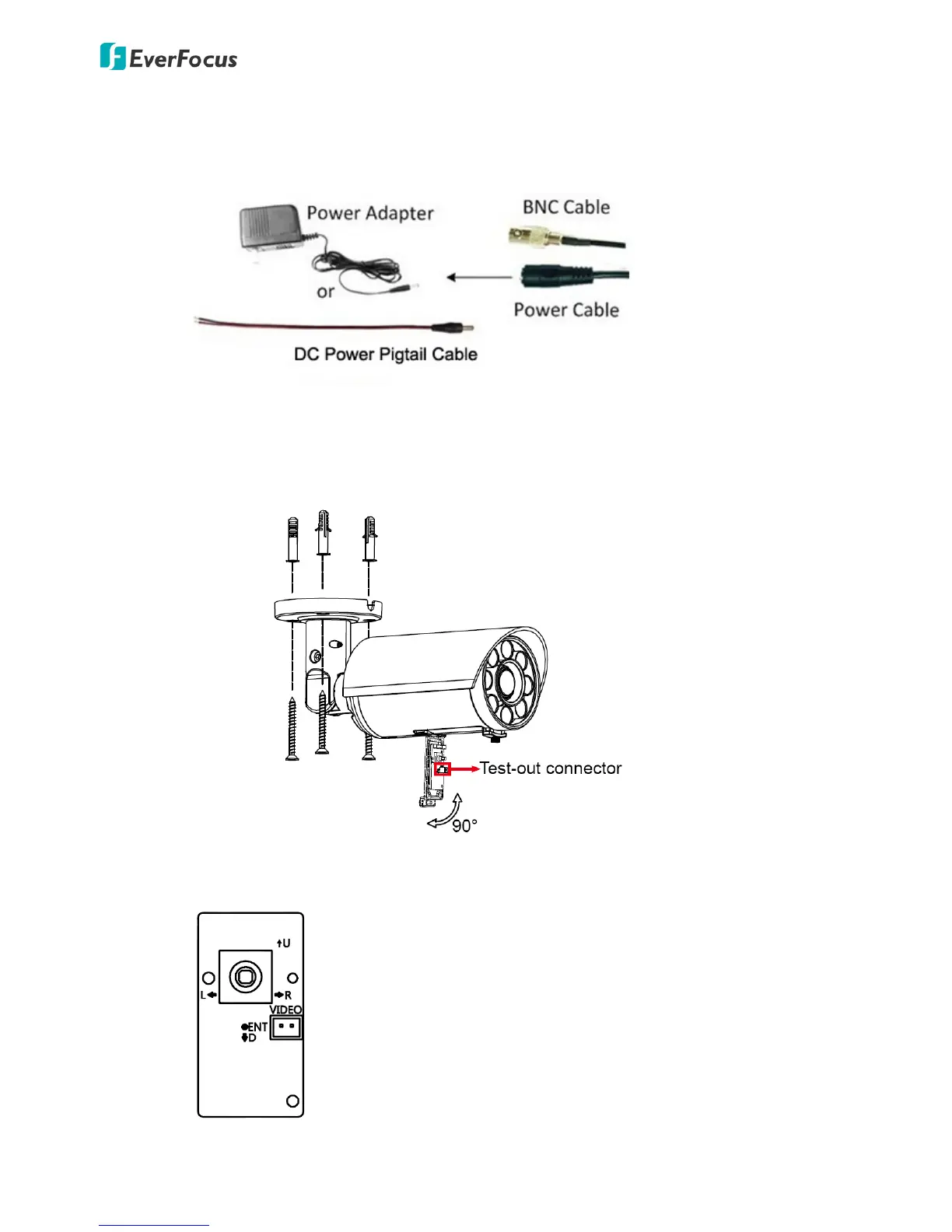 4. Connect the camera to the 12VDC or 24VAC power source. (For 12VDC power source, you