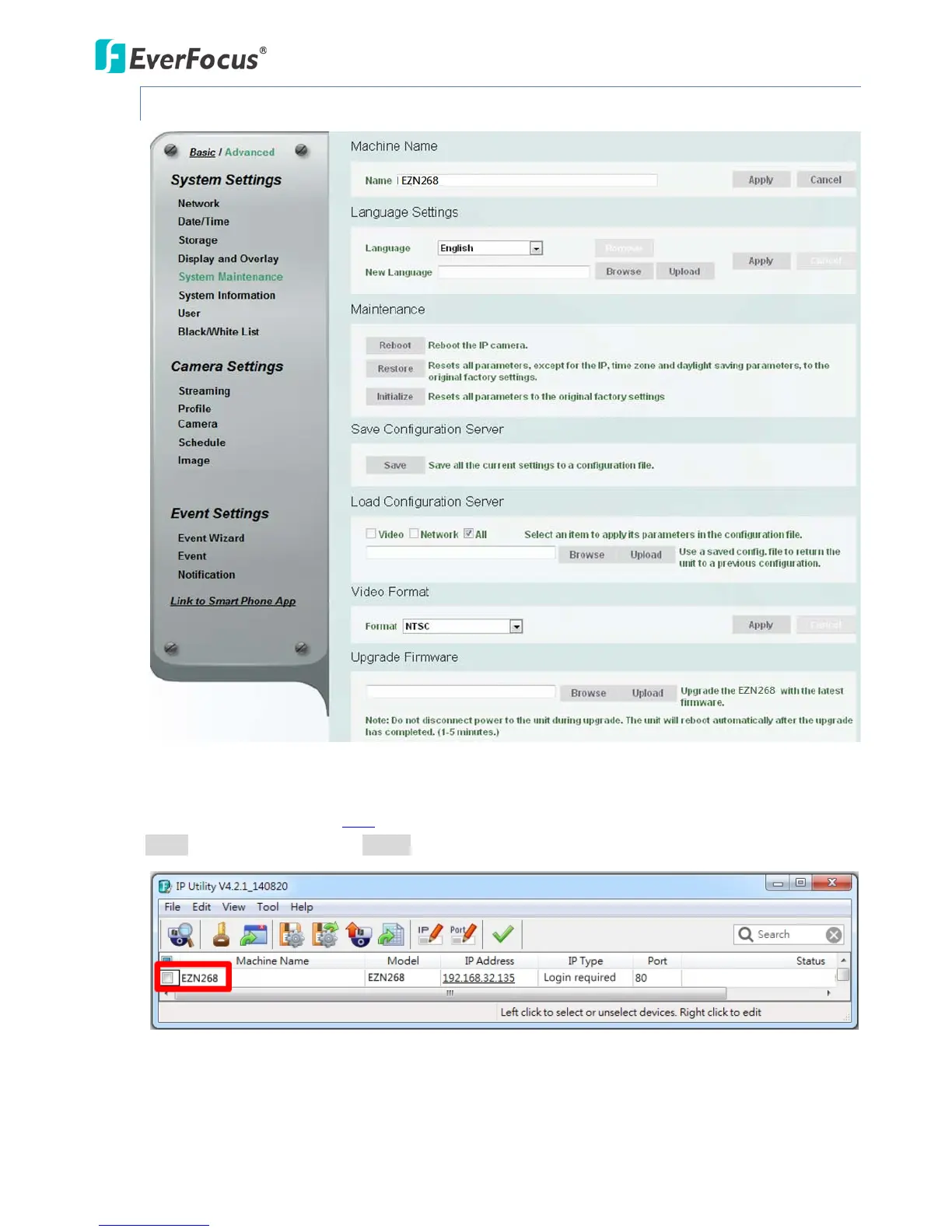 EverFocus EZN268 - 6.1.5 System Maintenance
