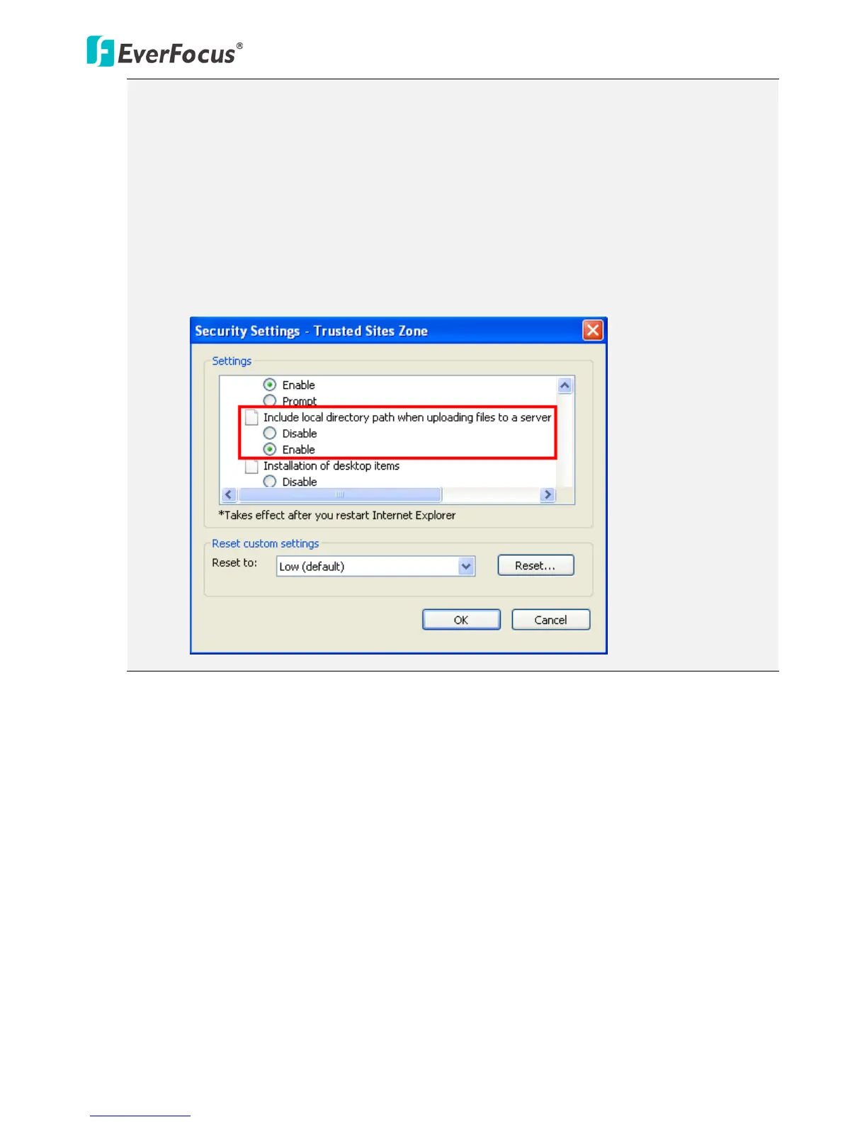 a. Go to Internet Explorer > Tools > Internet Option > Security > Custom.