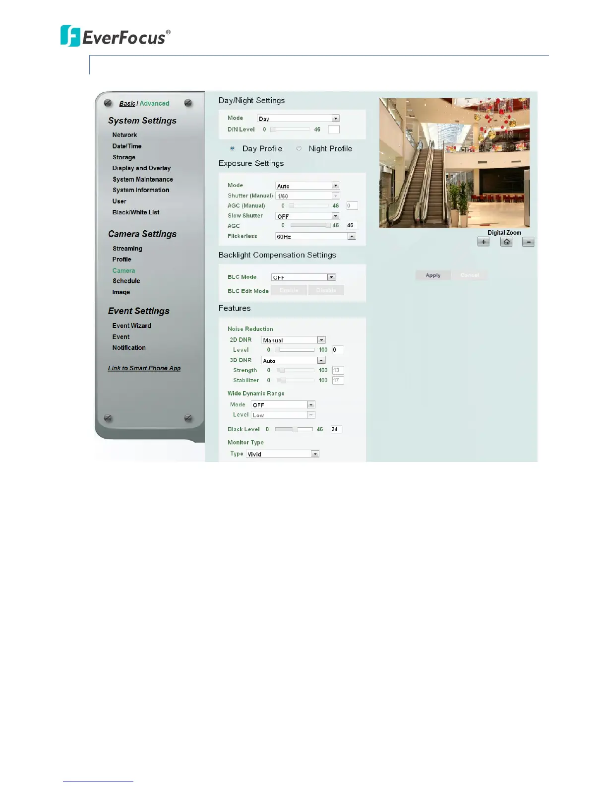 AutomodewithoutIRLED:SelecttoletthecameraautomaticallyswitchtoNightmode