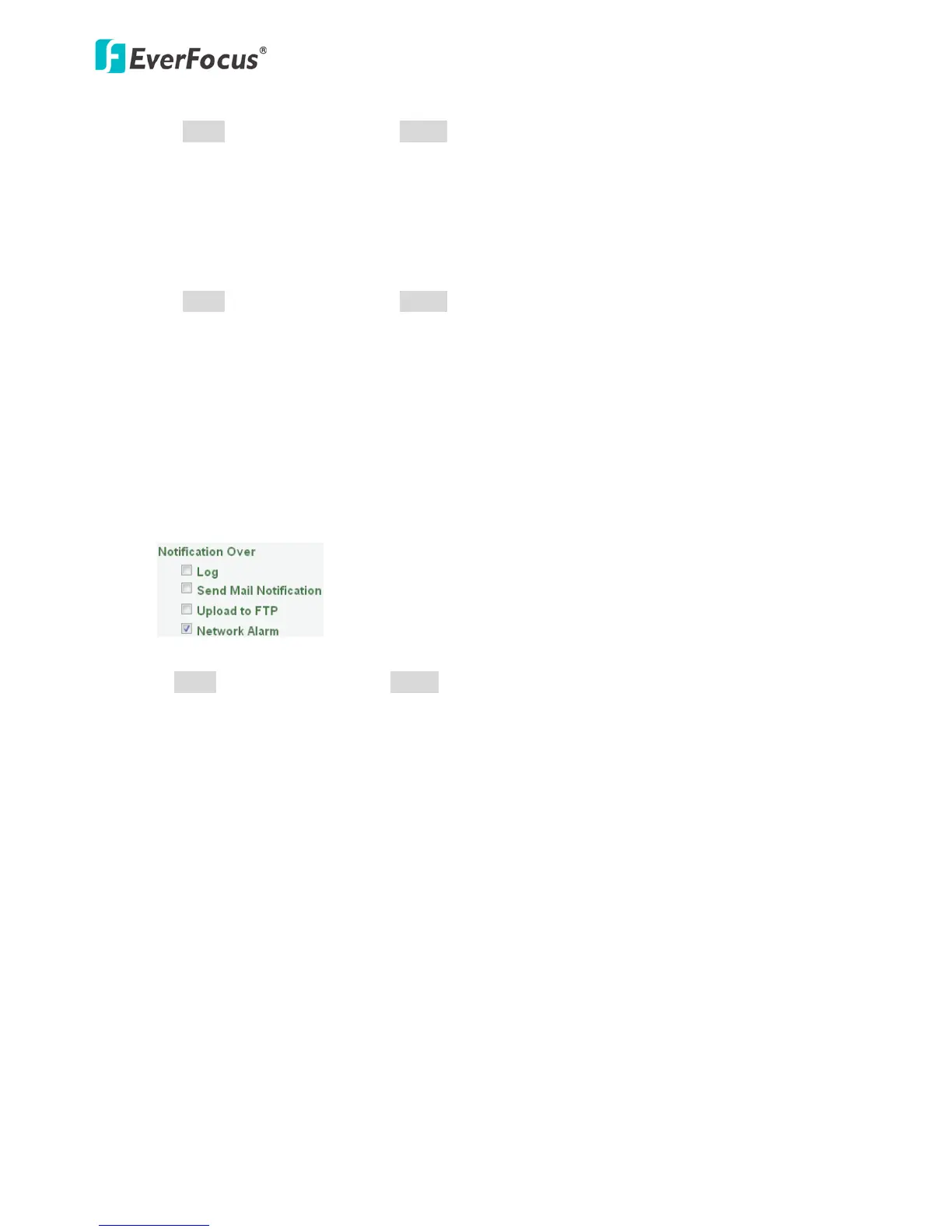 【Network Alarm Settings】This function works with EverFocus CMS software. The camera can send a