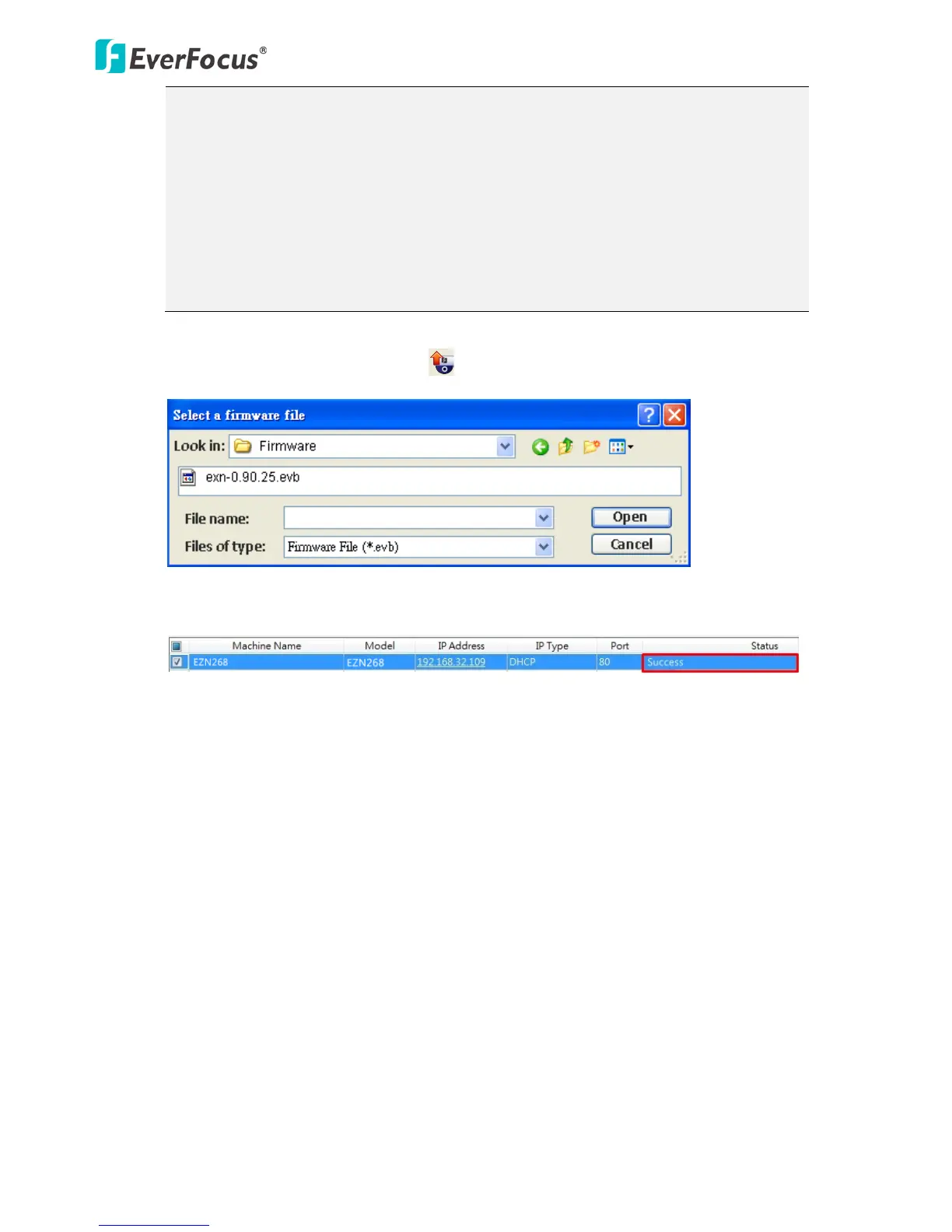 5. Select the firmware file (.evb) and then click Open. The IPU will automatically upgrade the