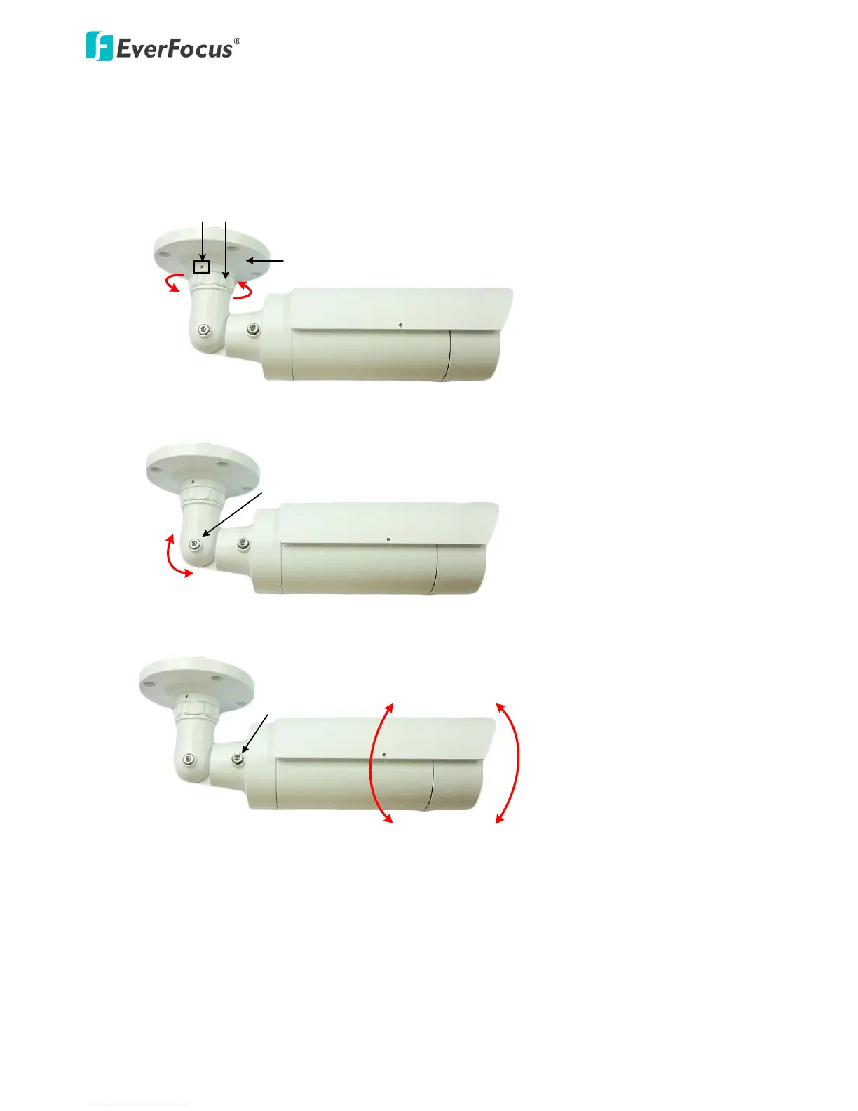 Rotational Adjustment: Loosen the Rotate Screws on both side of the camera body using the