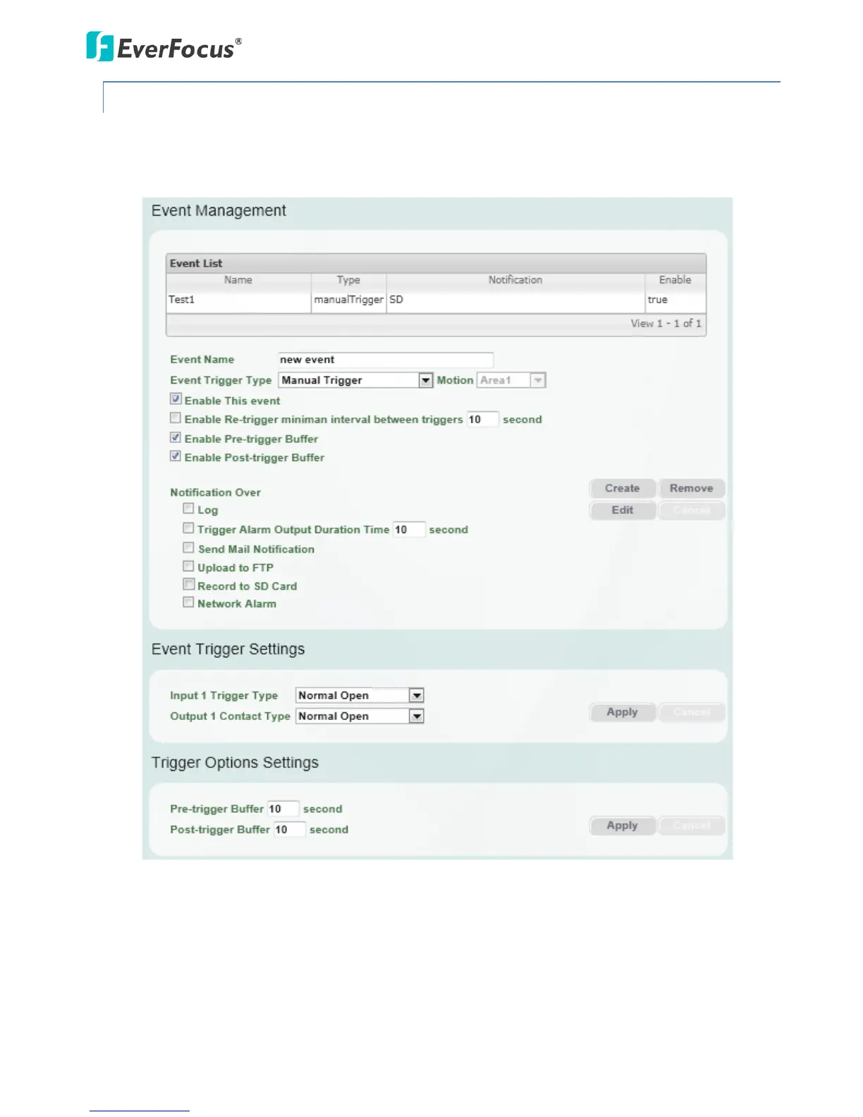 1. To test the Playback function (this is not required), set up a “Manual Trigger” Recording Event by