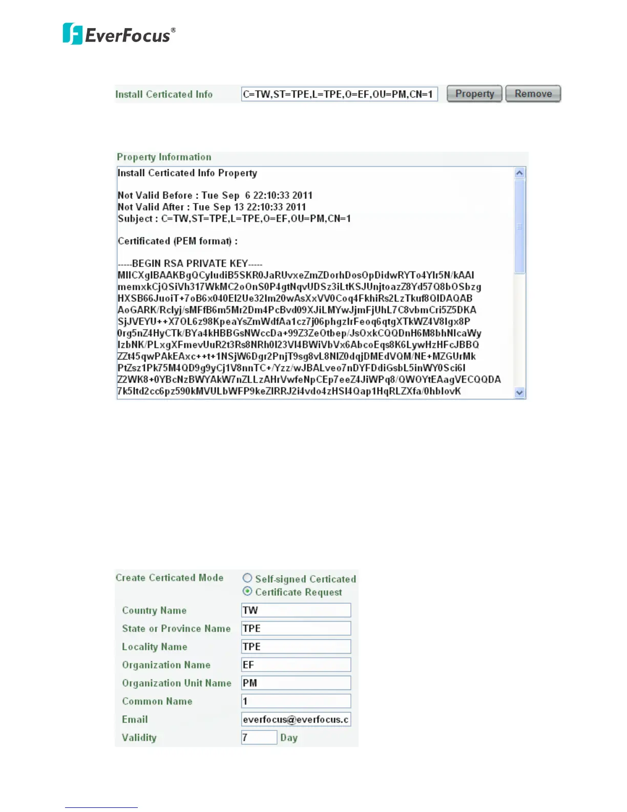 Remove button to erase the certificate.