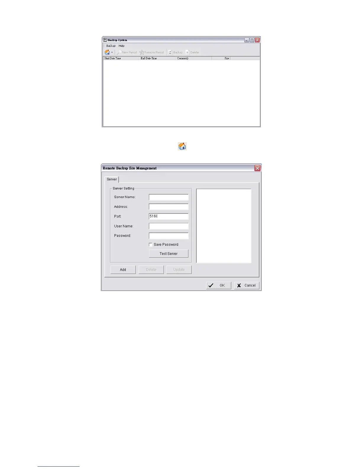 2. Click the Remote Server Site button to set up remote server.