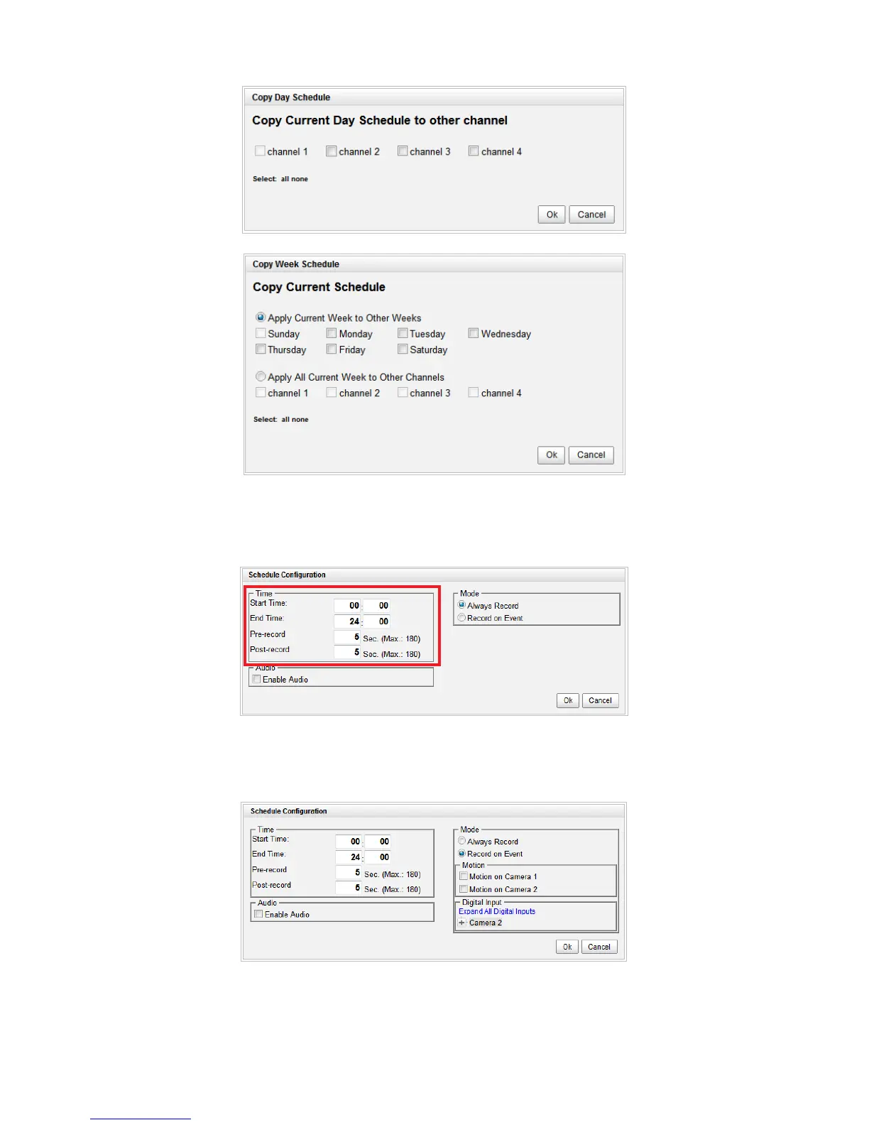 7. The default setting of the camera’s recording schedule is from 00:00 to