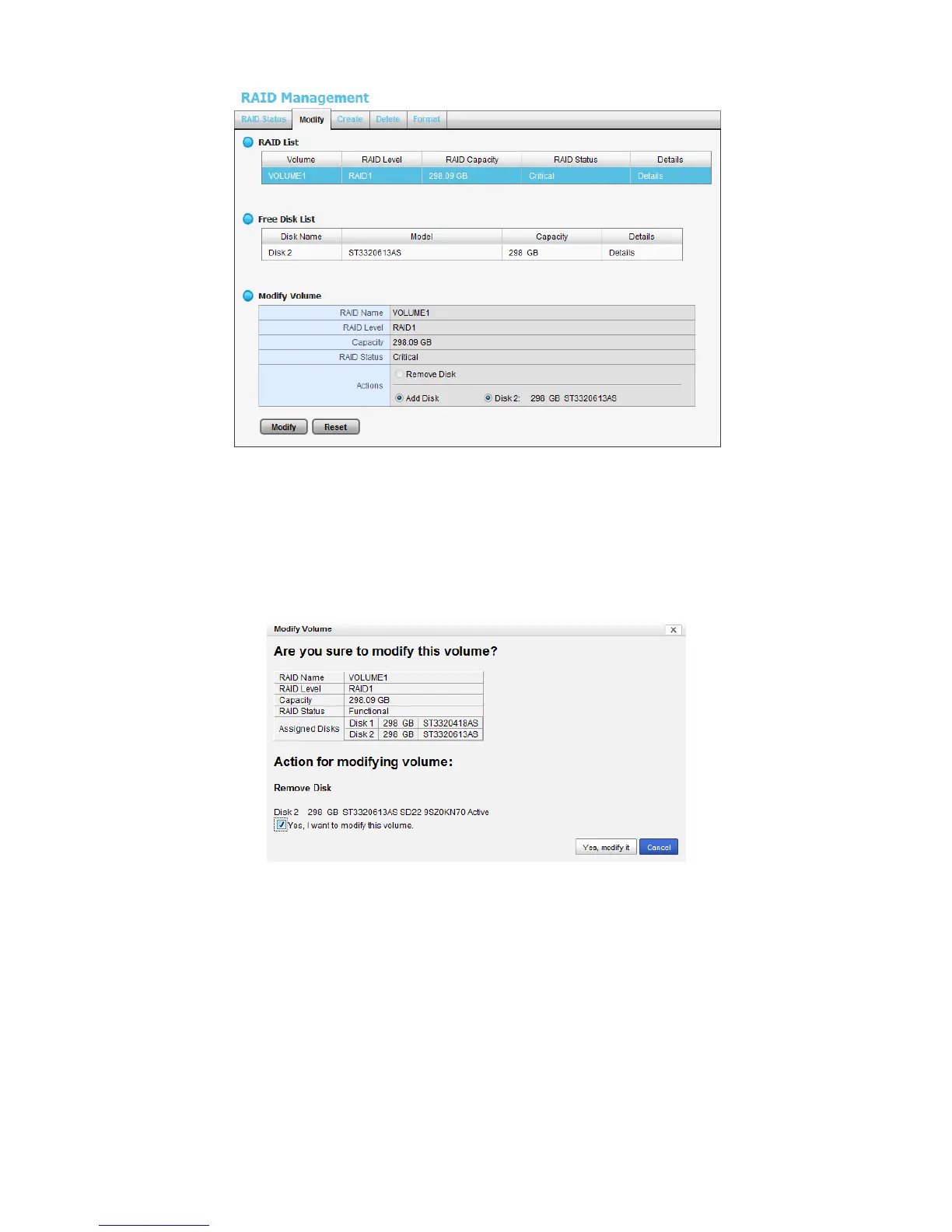 volume box, and click the Yes, modify it button.
