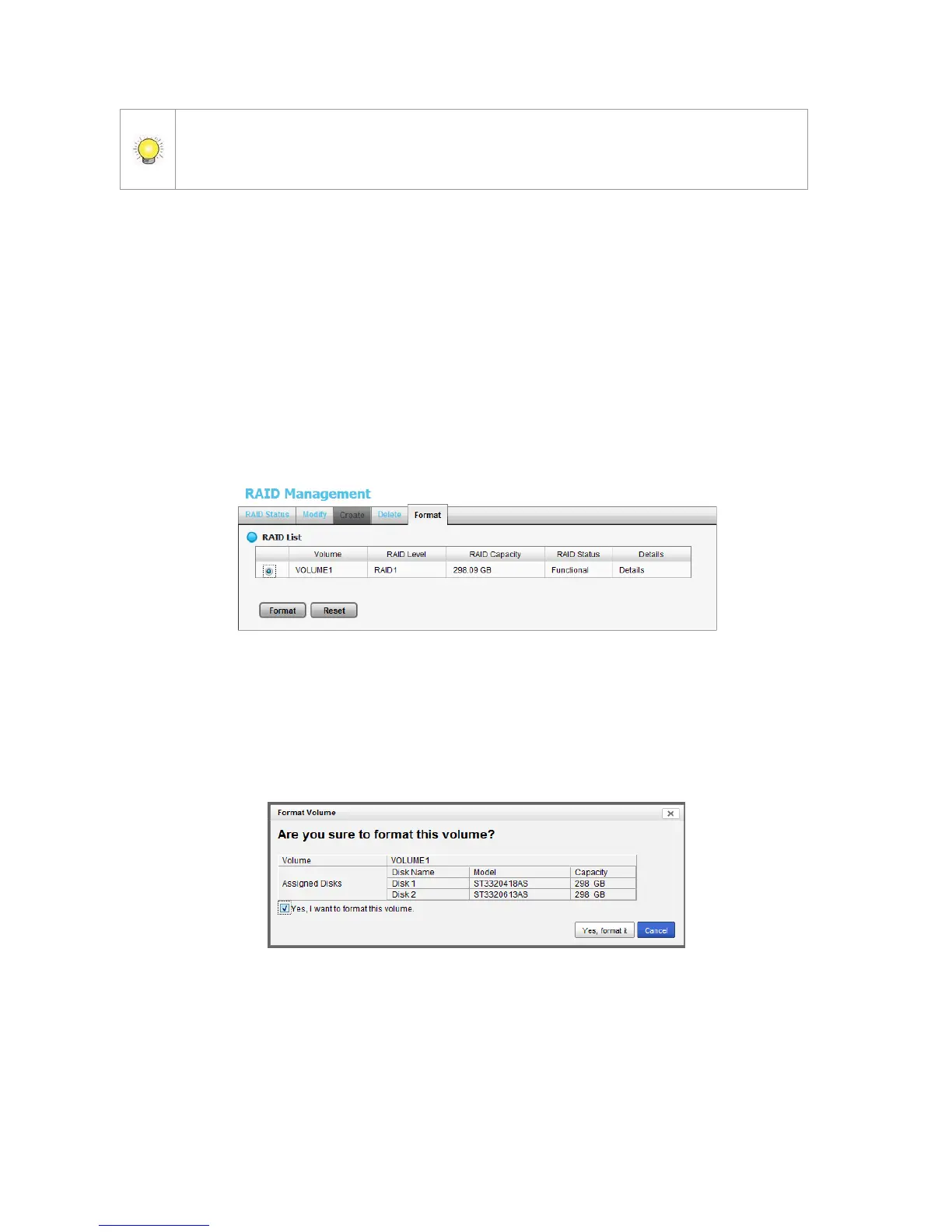 4. Click the option button beside the RAID Volume you want to format.
