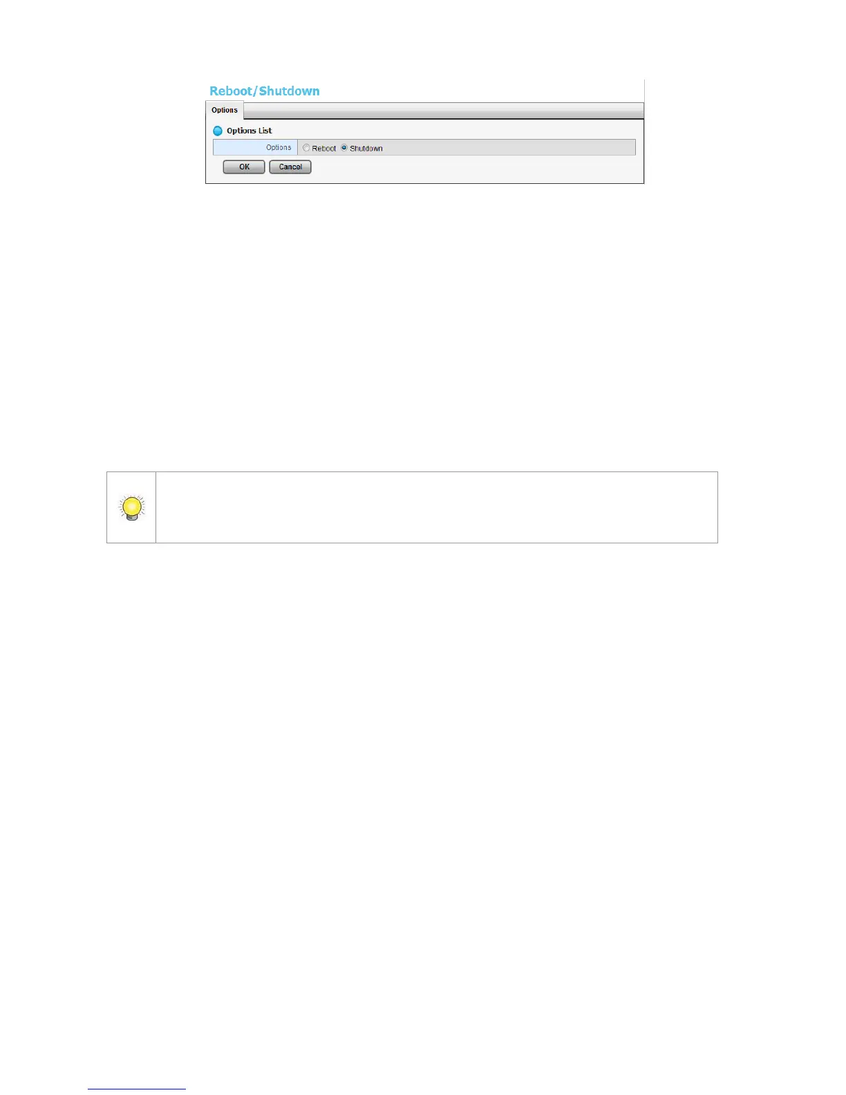 5. A confirmation dialog pops up. Click the OK button to shutdown the unit.