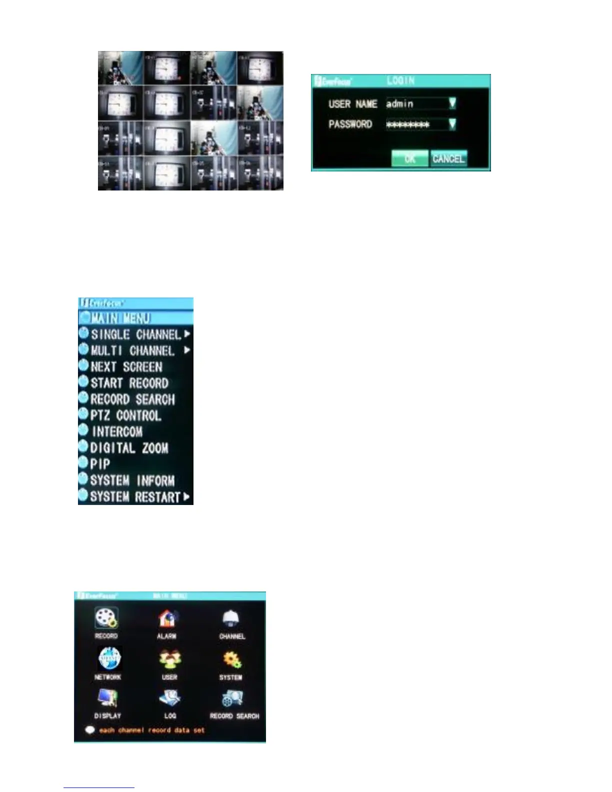 HDD error, password error and video loss setup.