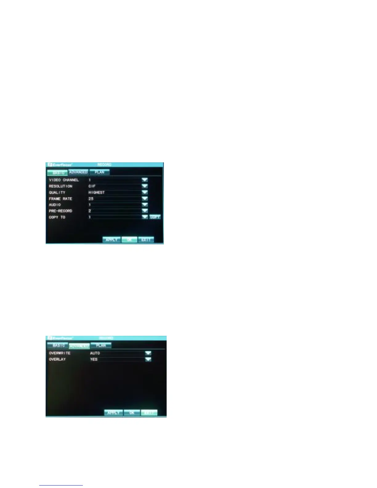 “Plan” interface including not recording, timer recording, alarm recording as well as