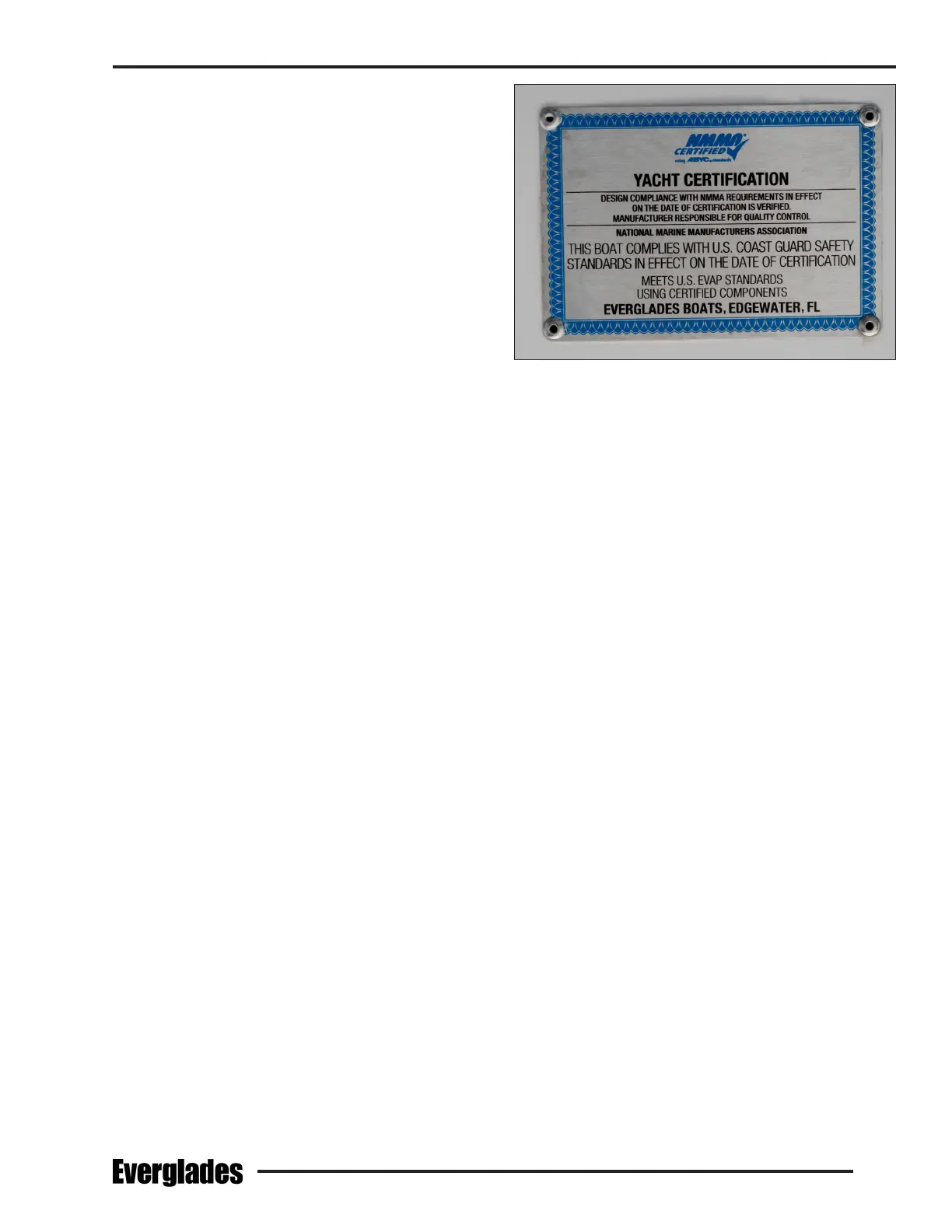 tion plate indicating compliance with the NMMA