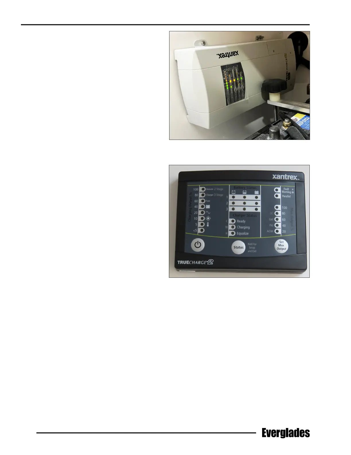 cluster or the LED lights on the charger control