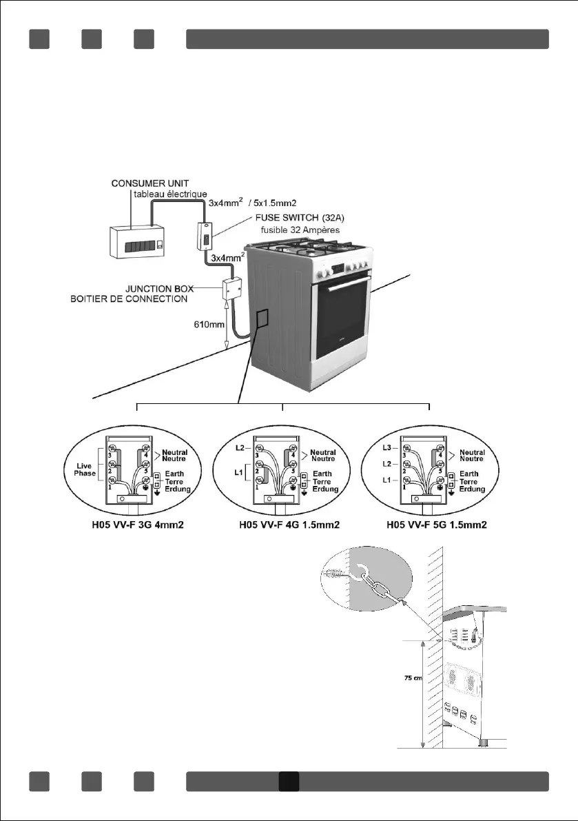 appliance to the wall using the chain and hooked screw supplied. Ensure