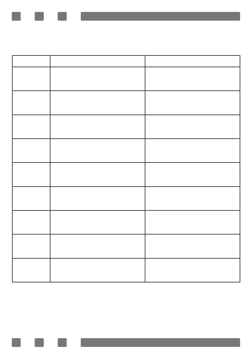 Error codes, their probable causes and recommendations for solu-