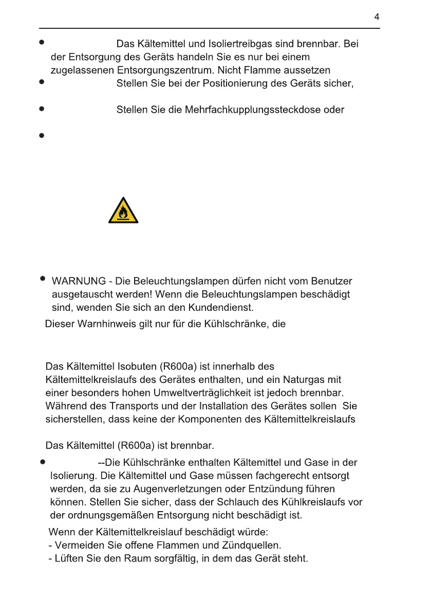 Kältemittel und das Treibgas der Isolierung brennbar sind.