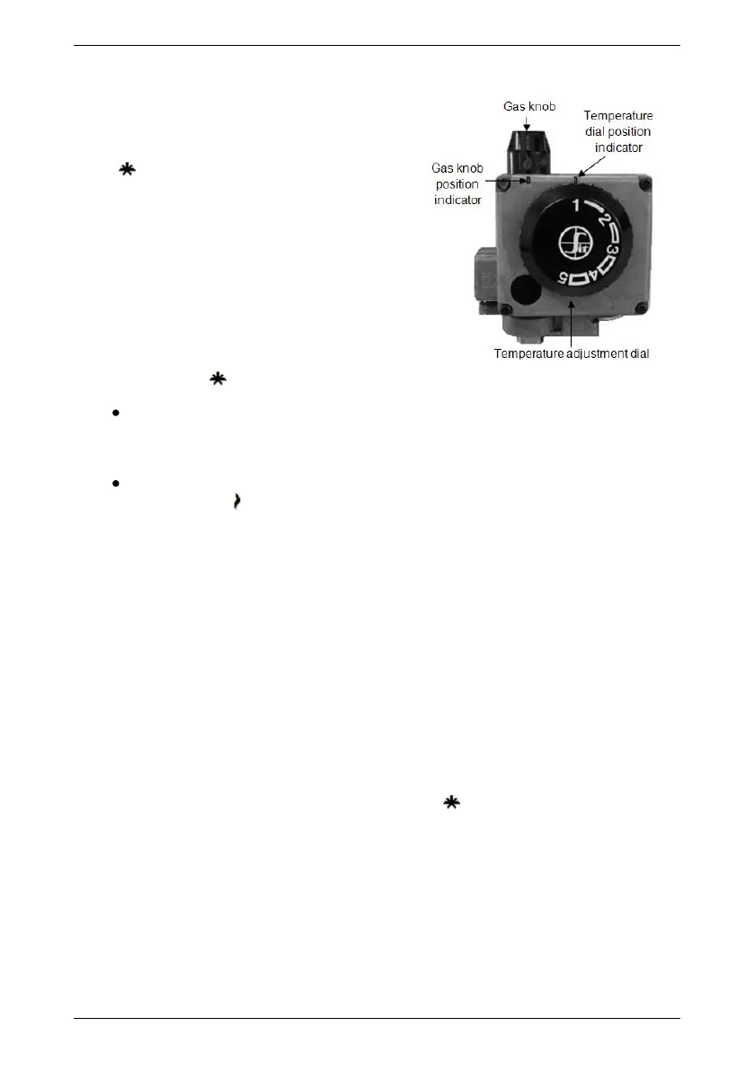 red flame “ ” (on) position) and the burner will ignite when heating is