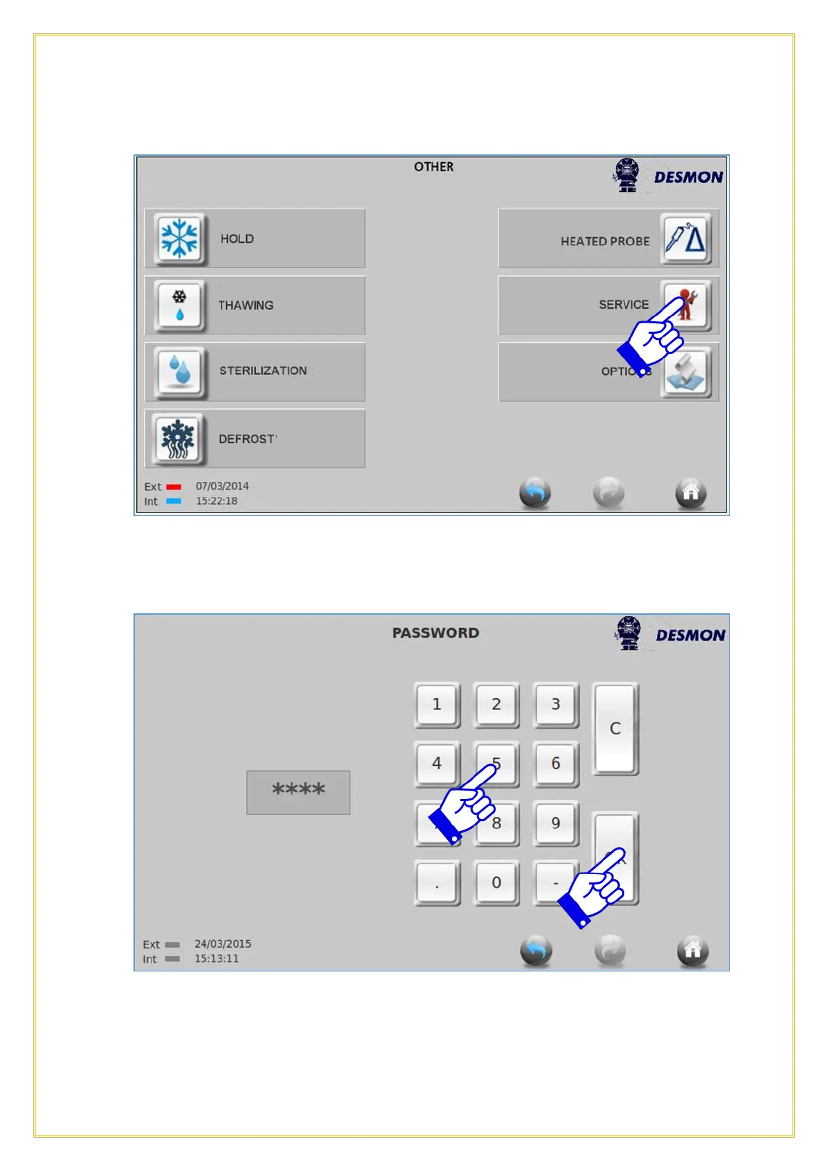 Insert the password provided to you by the manufacturer service team member and press