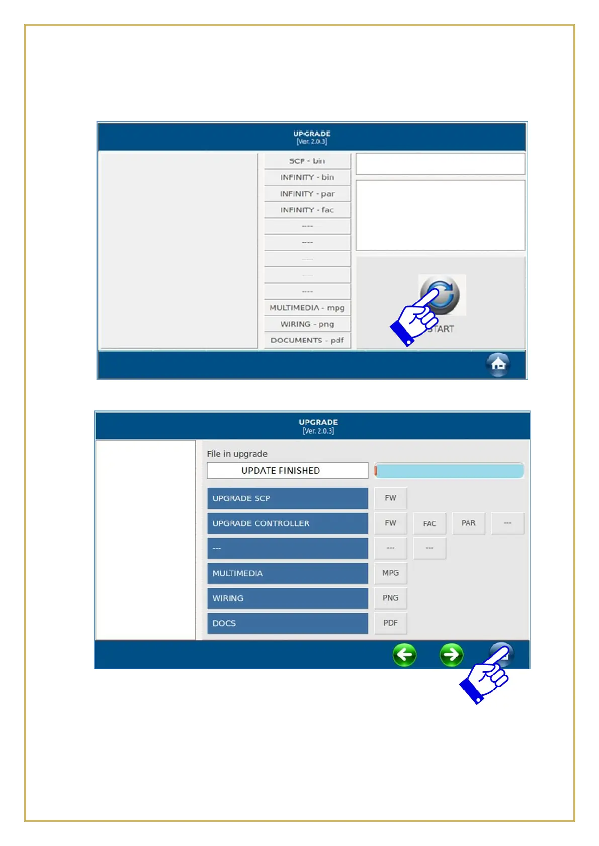 At the end of the procedure the screen will show UPDATE FINISHED. Press the HOME