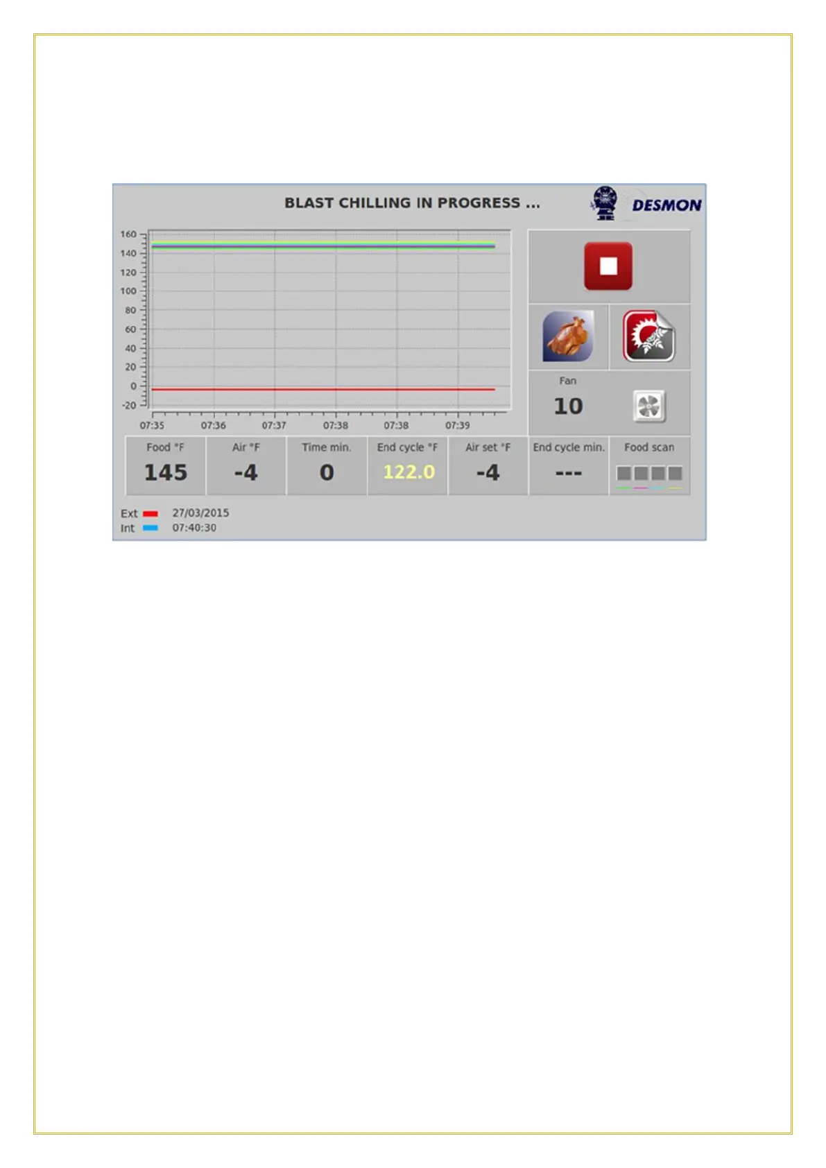 A graph will show in real time the product core temperatures read by the Product Probe