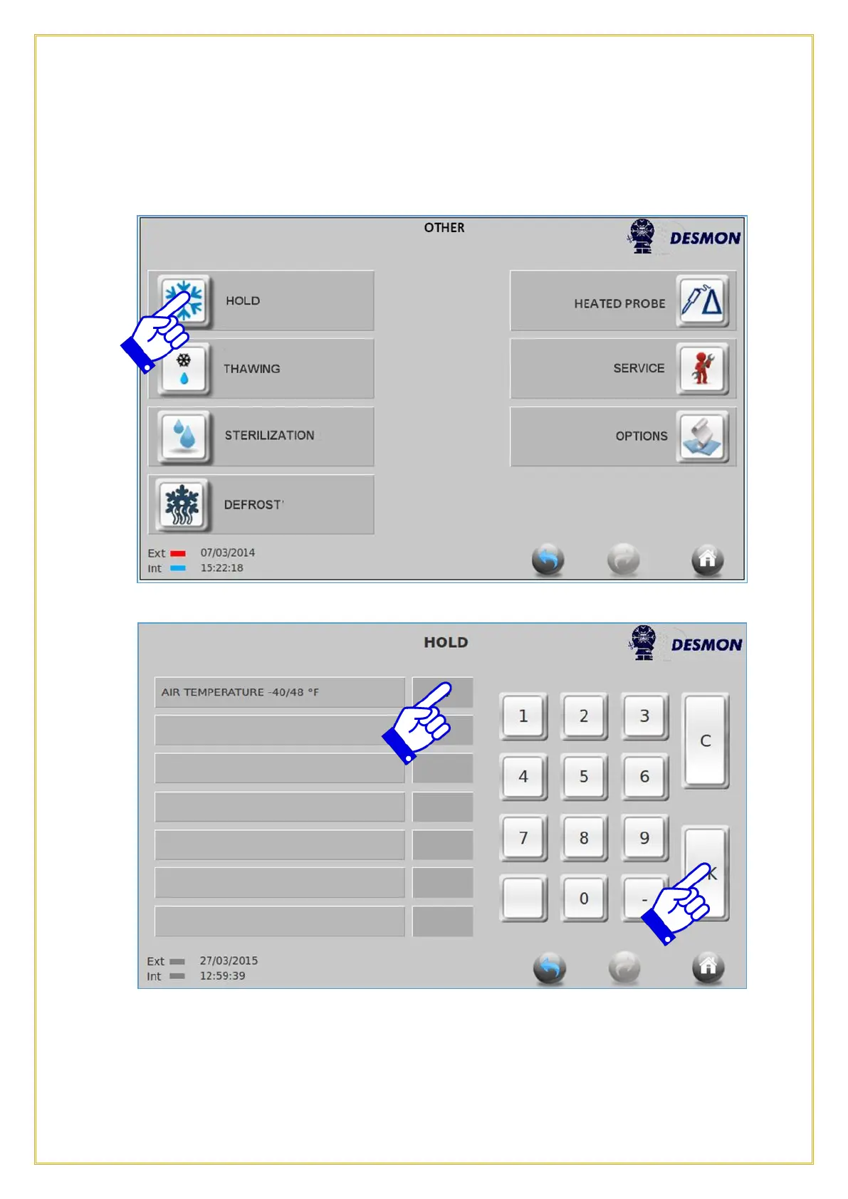 To change the Hold temperature, press the Air Temperature tab, the tab will turn Blue