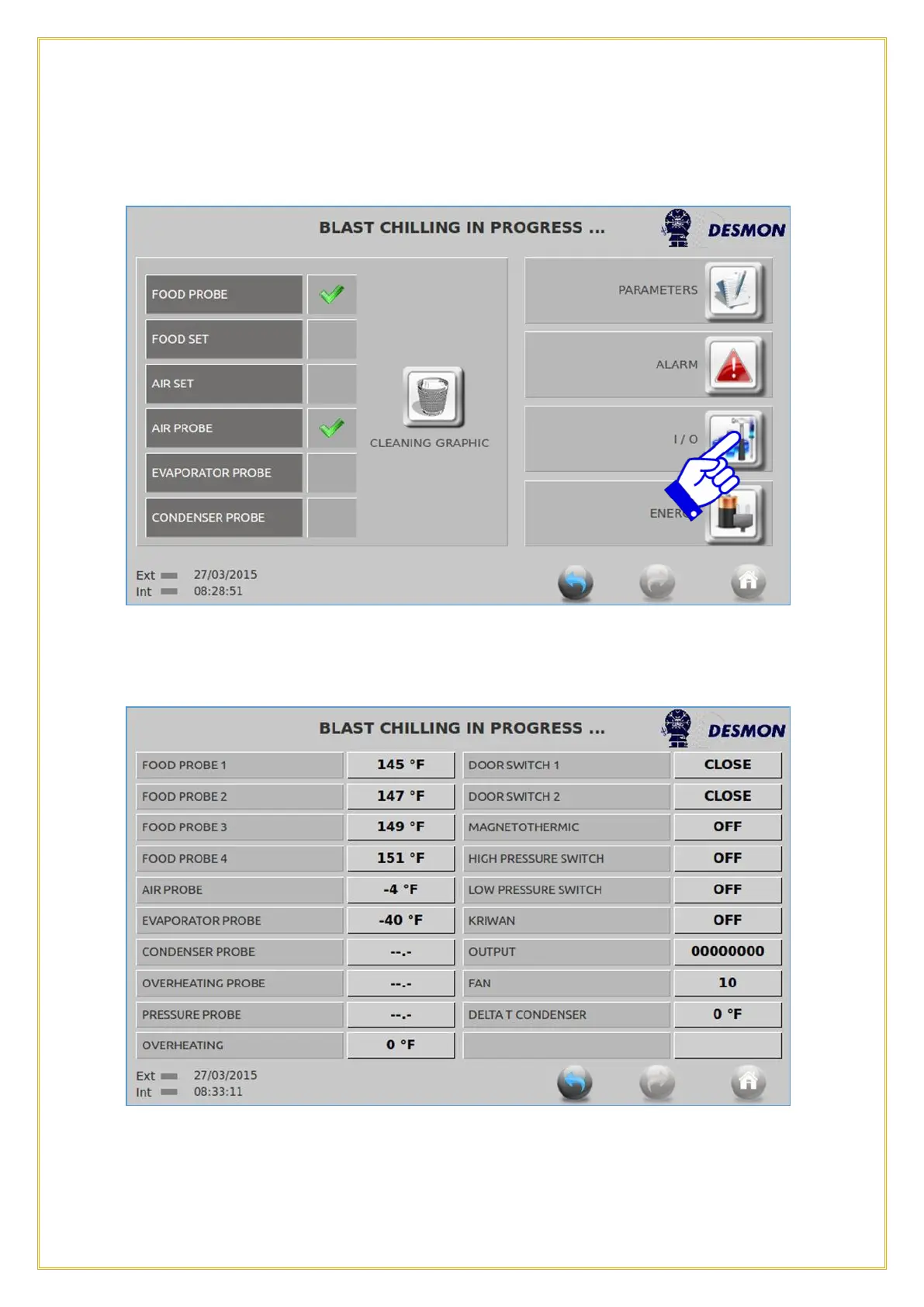 Temperature probe, Condenser probe and the Door(s) status. Additionally, the I/O