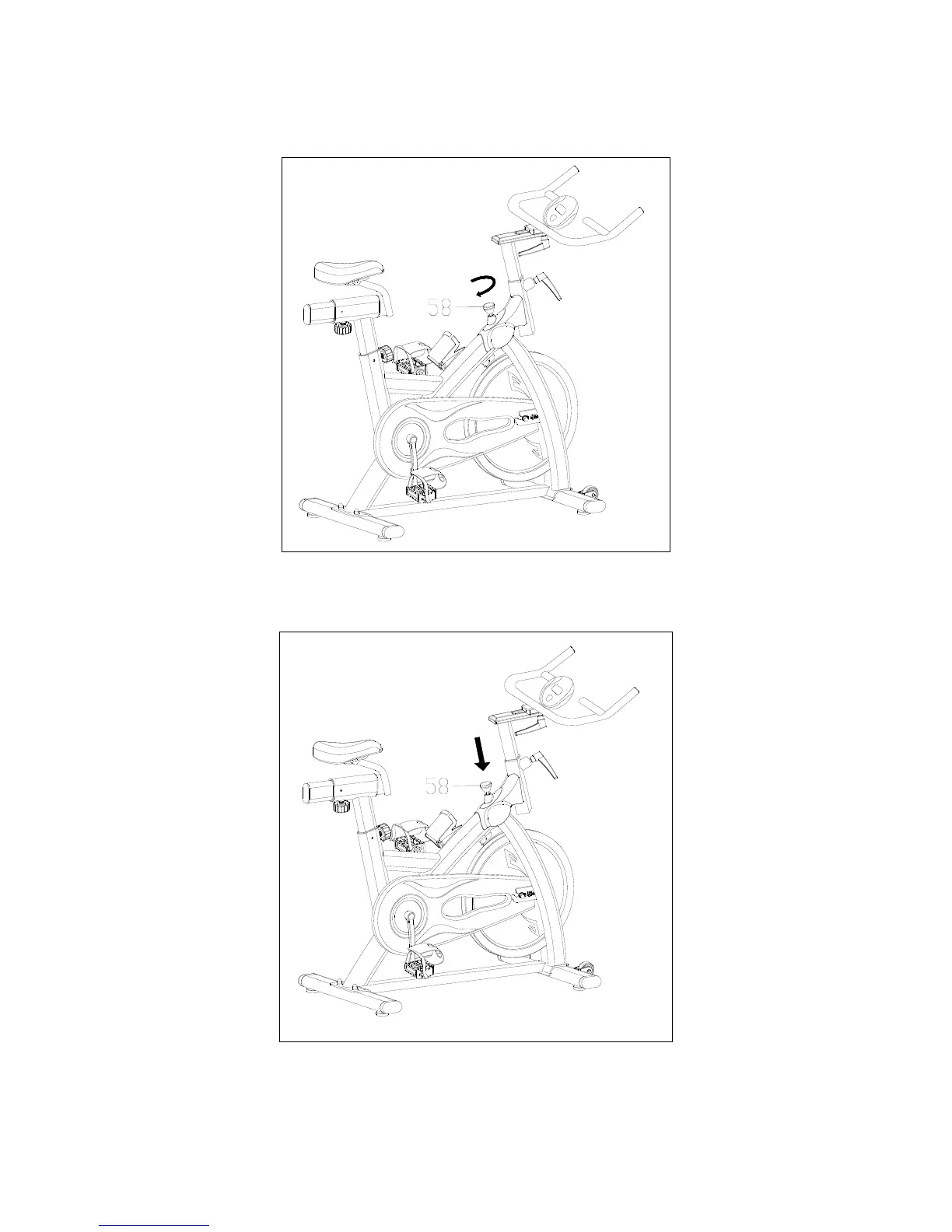 IMPORTANT: Press down on the tension/brake knob (58) to stop the flywheel.