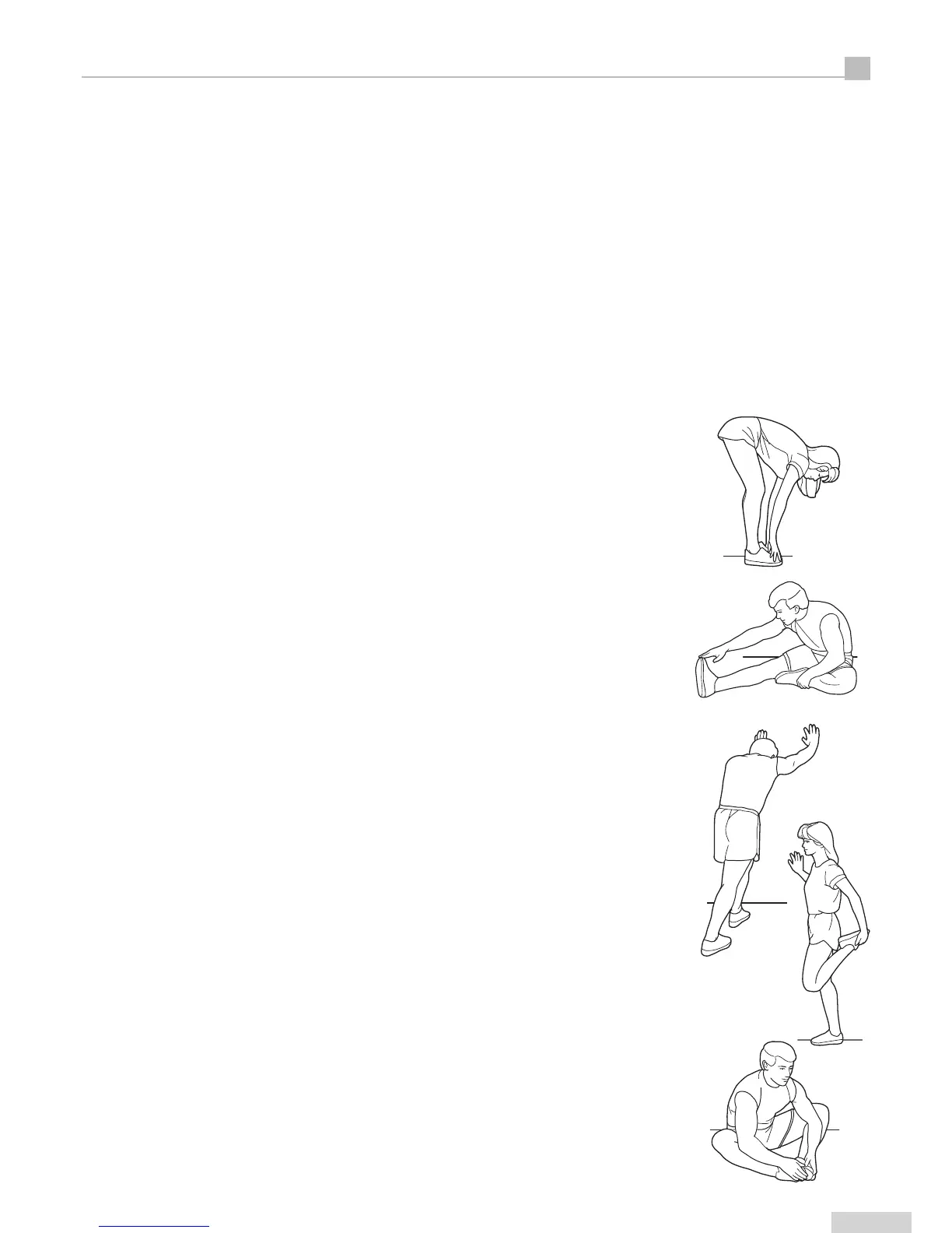 The correct form for several basic stretches is shown at the right. Move slowly as