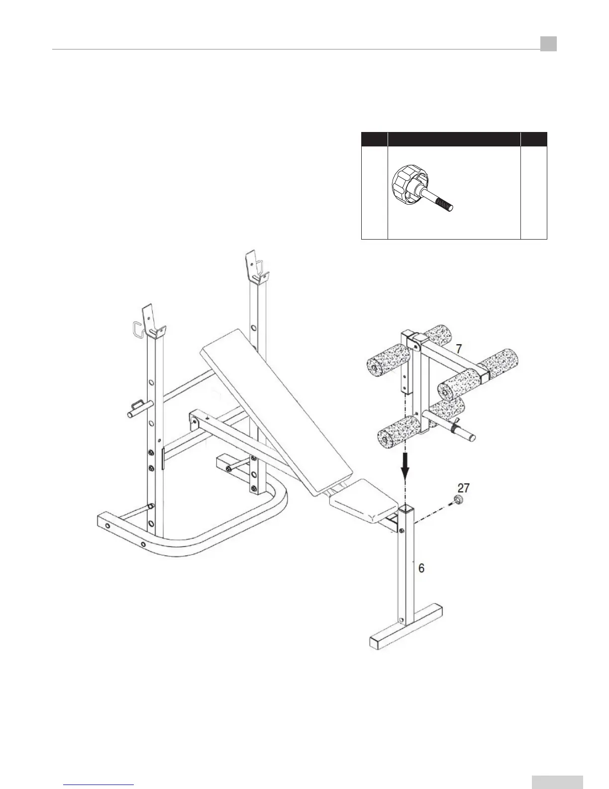 Fit Leg Extension Support (7) into the leg extension on upright to any one of 3 position and lock