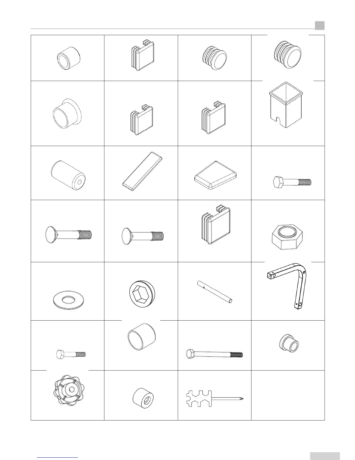 (32) Backrest Support Bushing 2pcs (33) Square End Cap (25mm) 4pcs (34) Round End Cap (ø19mm) 12pcs (35) Round End Cap (ø25mm) 3pc