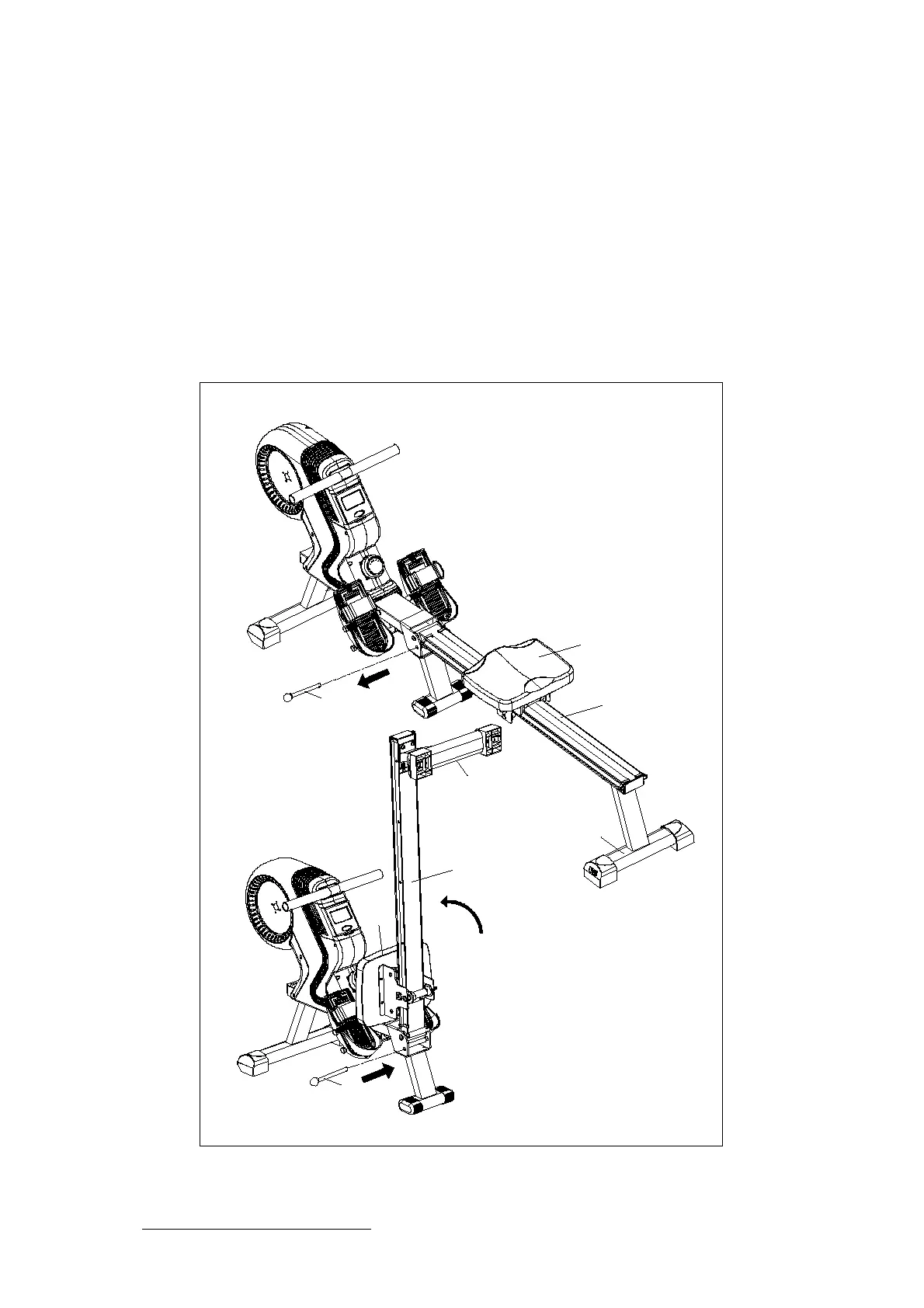 You can fold the rower by locating the Ball Head Pin (65) on the Slide Rail (2) and removing it.