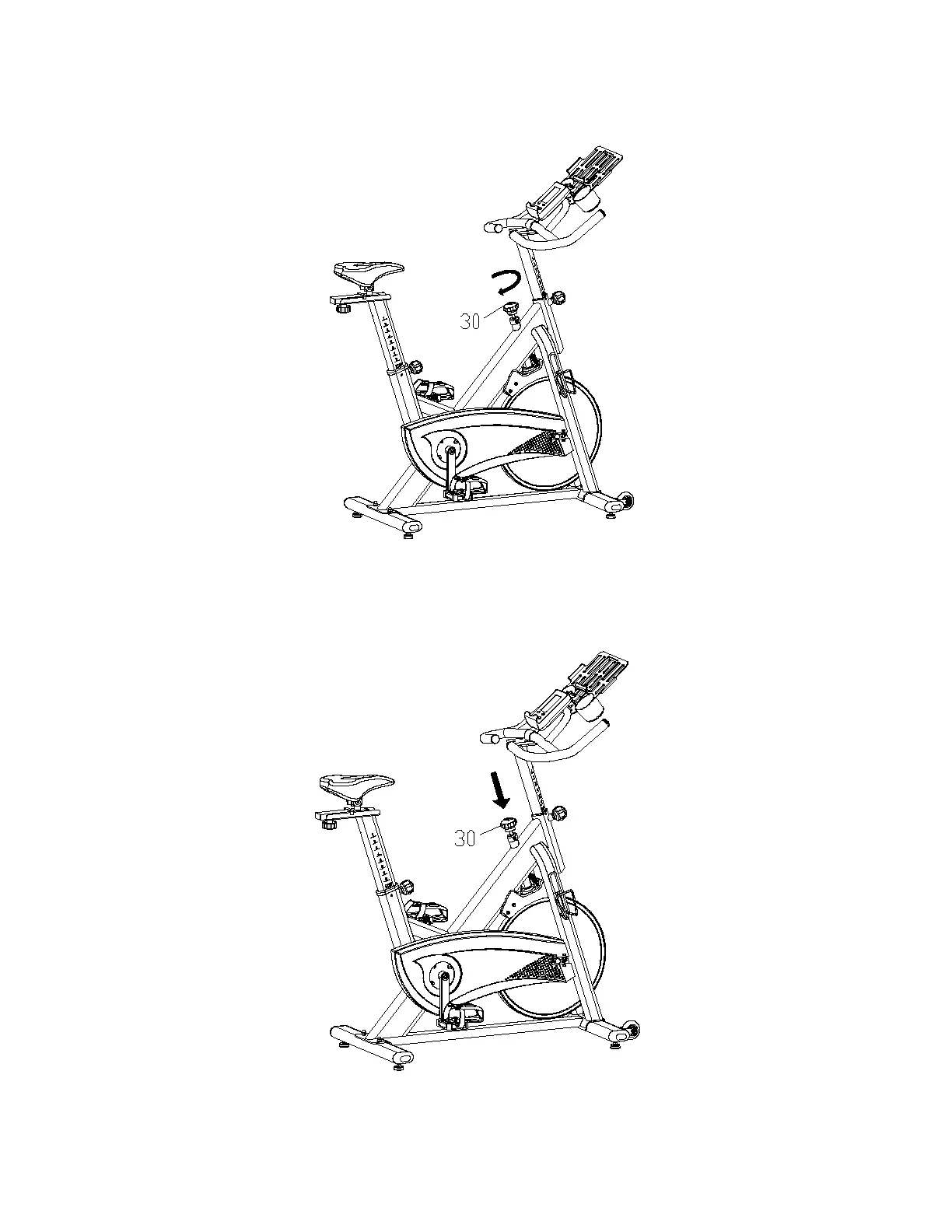 IMPORTANT: Press the tension knob (30) to stop the flywheel.
