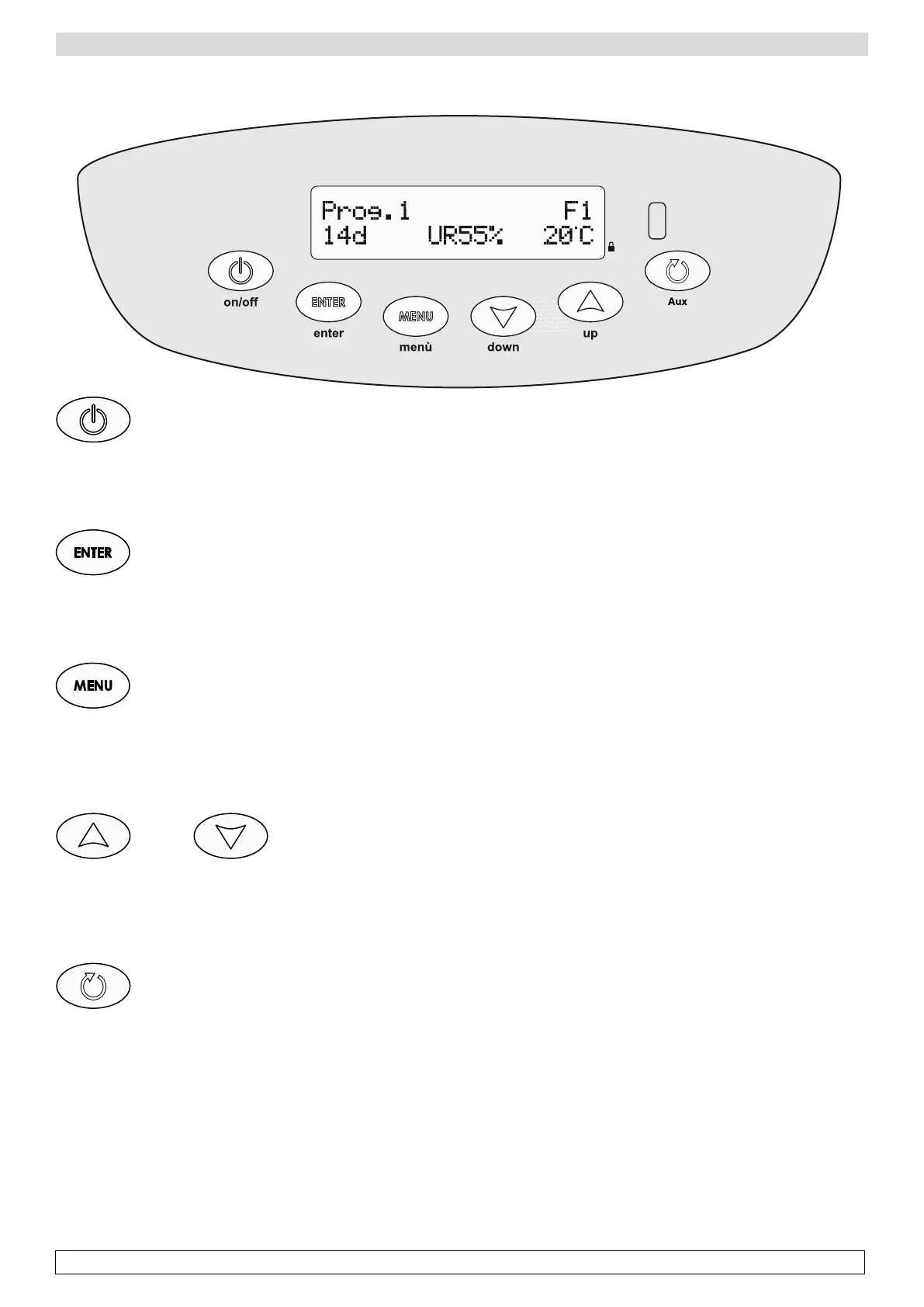 -Reset ciclo in corso: premere il tasto Down per 3 secondi (lo stagionatore ritorna all’inizio della FASE 1)