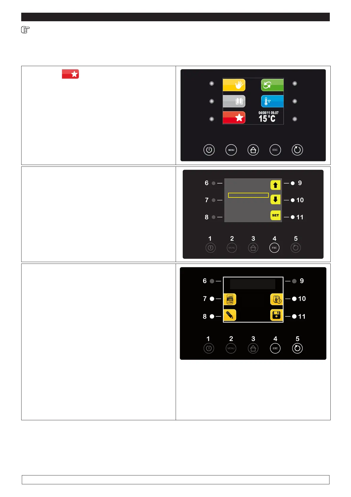 This menu allows you to recall the favourite running cycles promptly, i.e. the last 10 implemented