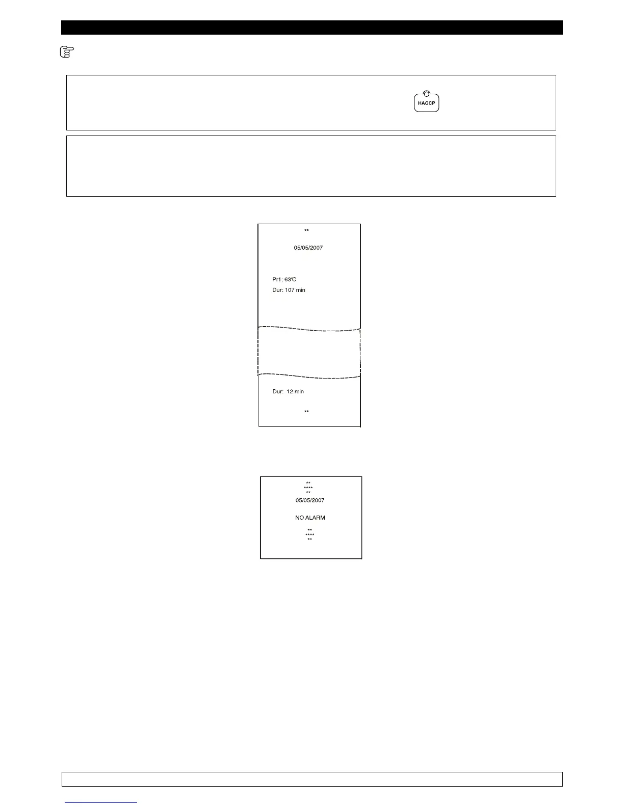 La stampa dello storico allarmi si attiva premendo il tasto HACCP