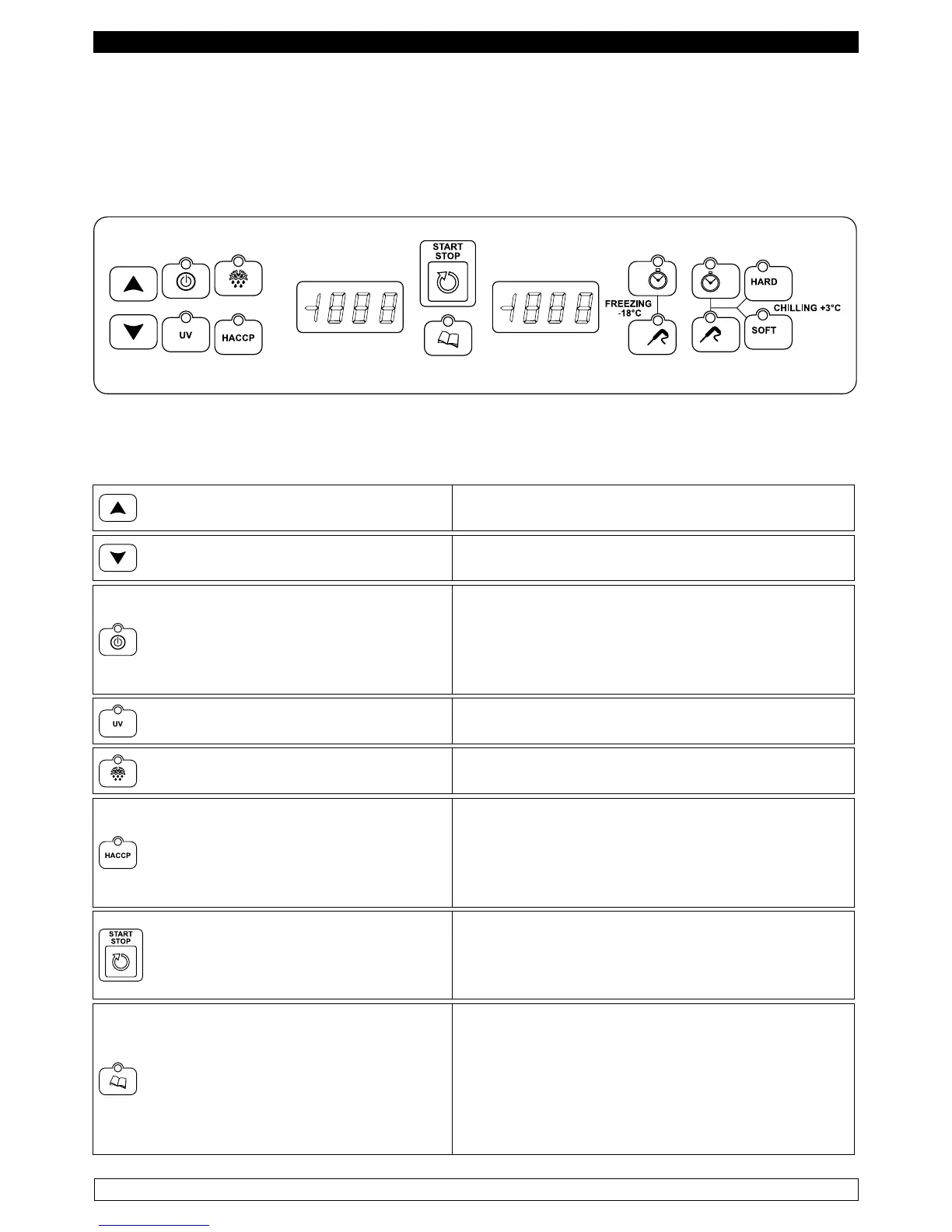 Il pannello di comando è un termoregolatore digitale per il freddo ed è provvisto di 14 pulsanti con