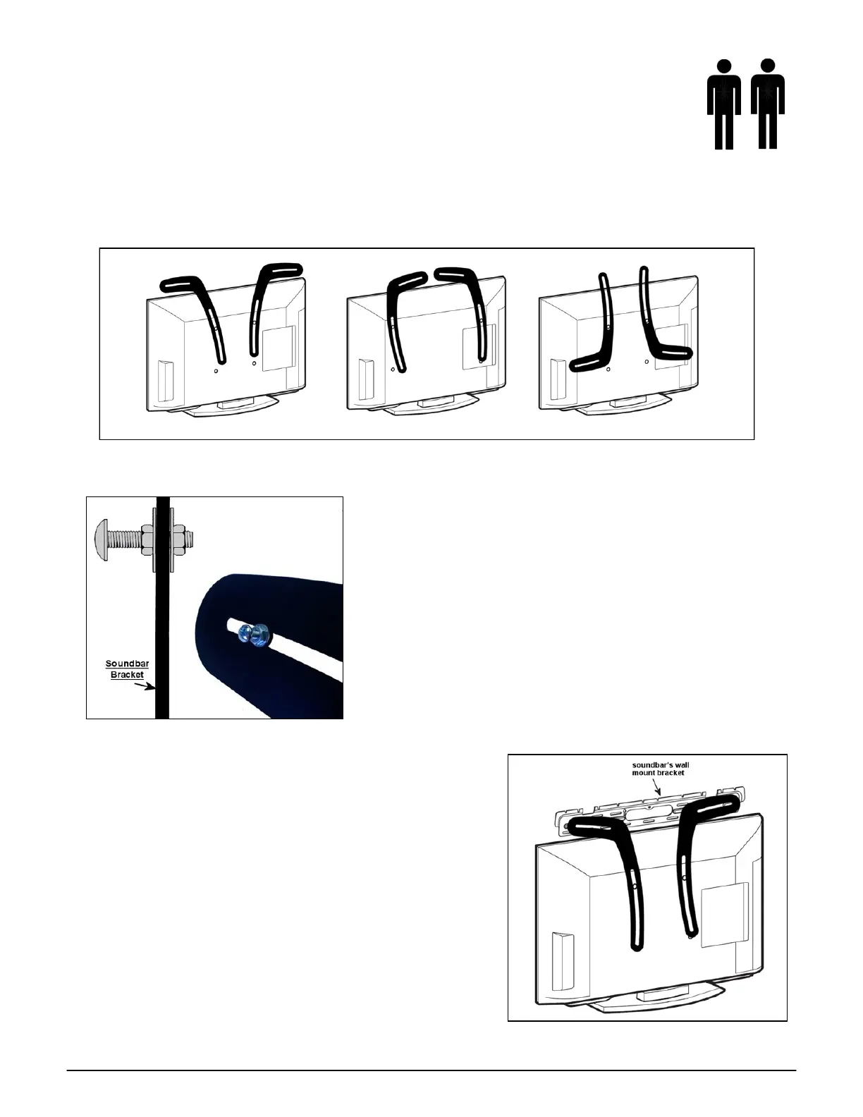NOTE: Only secure Soundbar Brackets with one bolt in each bracket as shown in diagrams. Additional washers