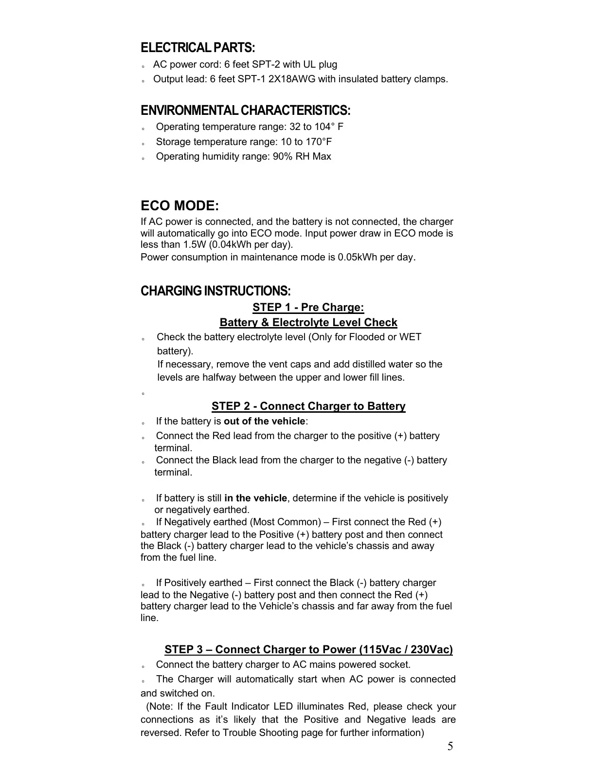 。 The Charger will automatically start when AC power is connected